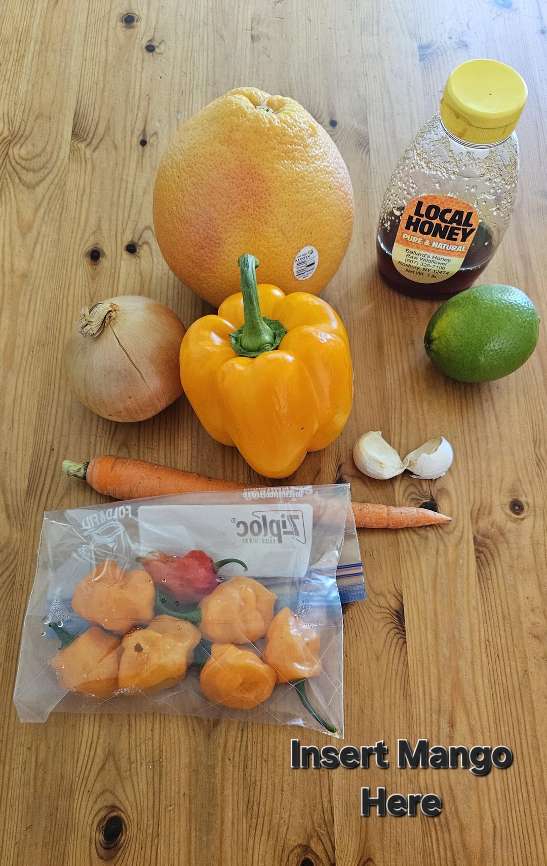 The mango (actual mango) was late to the group picture, even though it sat there next to them all.