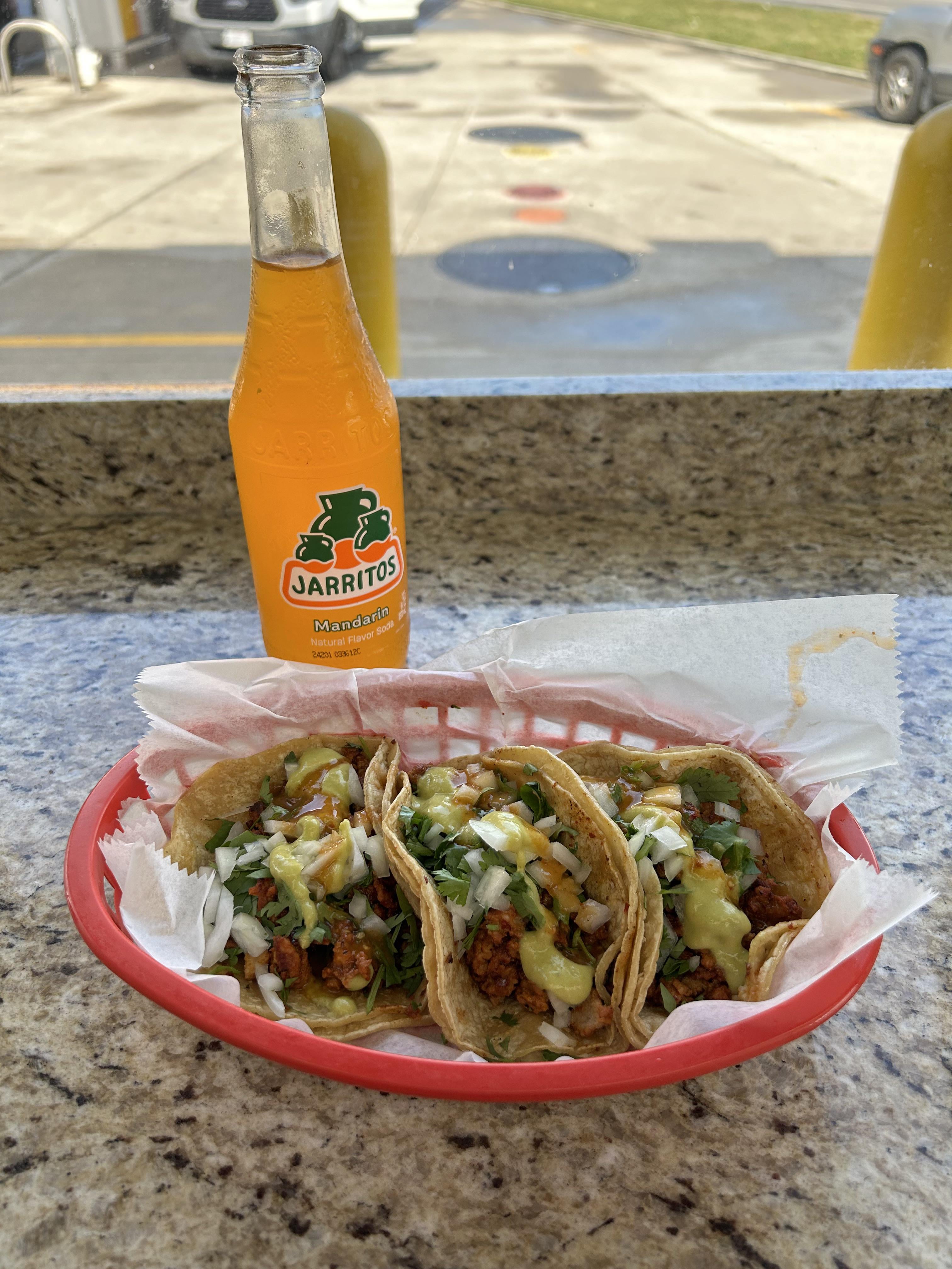 I found this taqueria not too far from my house in a Shell gas station. One guy from Arandas owns and runs the place all by himself, making cheap and delicious food. I had these three tacos and a jarritos and it was about $10.