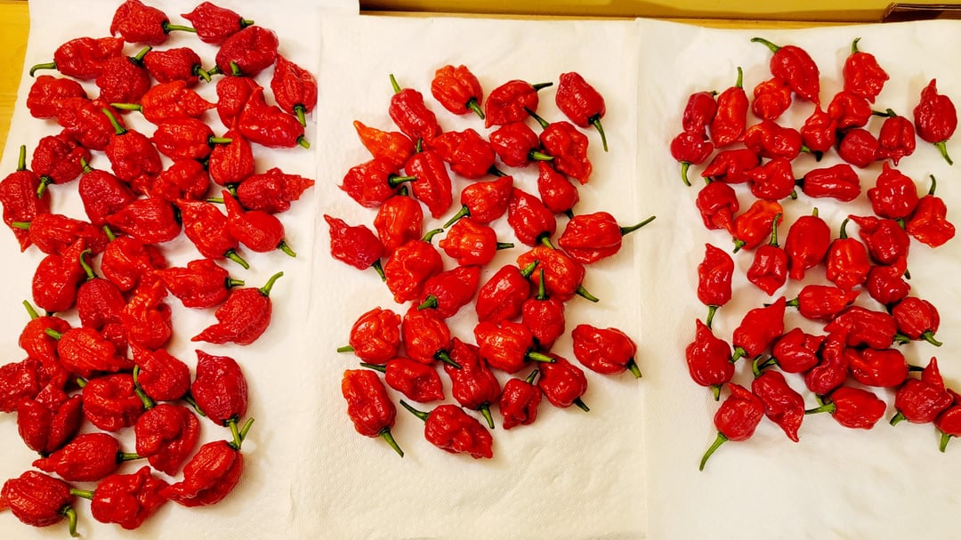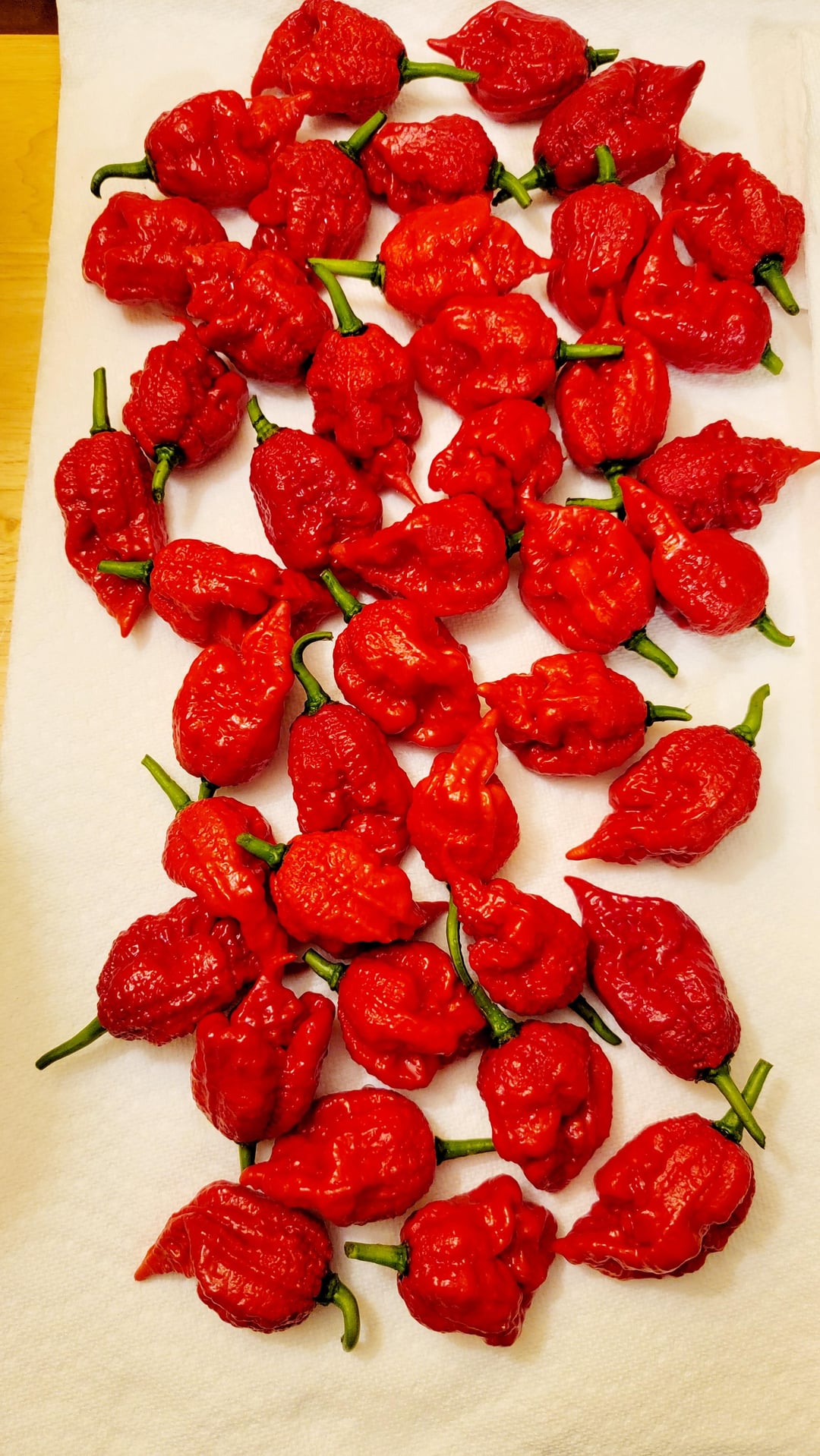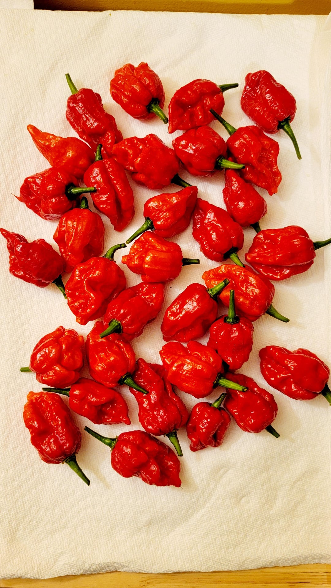 Bismarck, Borg 9, and Trinidad Moruga Scorpion peppers. Going to let them air dry overnight and start their fermentation process tomorrow. Probably save a few for pickling some veggies as well.by PepperPadre PepperPepper LoversWrite A CommentYou must be logged in to post a comment.