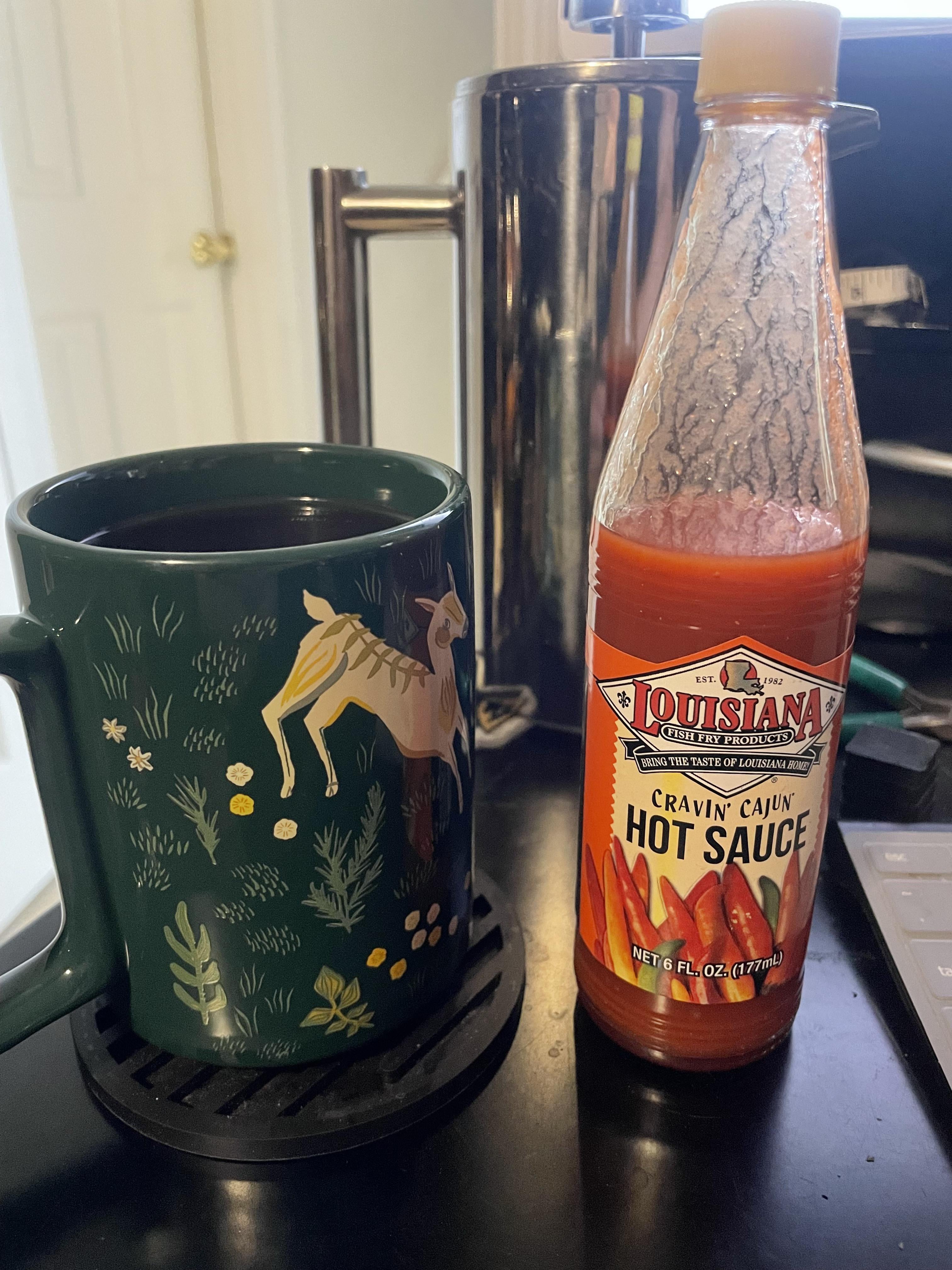I've been called insane for this before, but Louisiana style hot sauce is phenomenal in black coffee. This one is the best I've had so far. Pretty good on regular breakfast stuff too!by domestic-jones hot sauceSauceWrite A CommentYou must be logged in to post a comment.