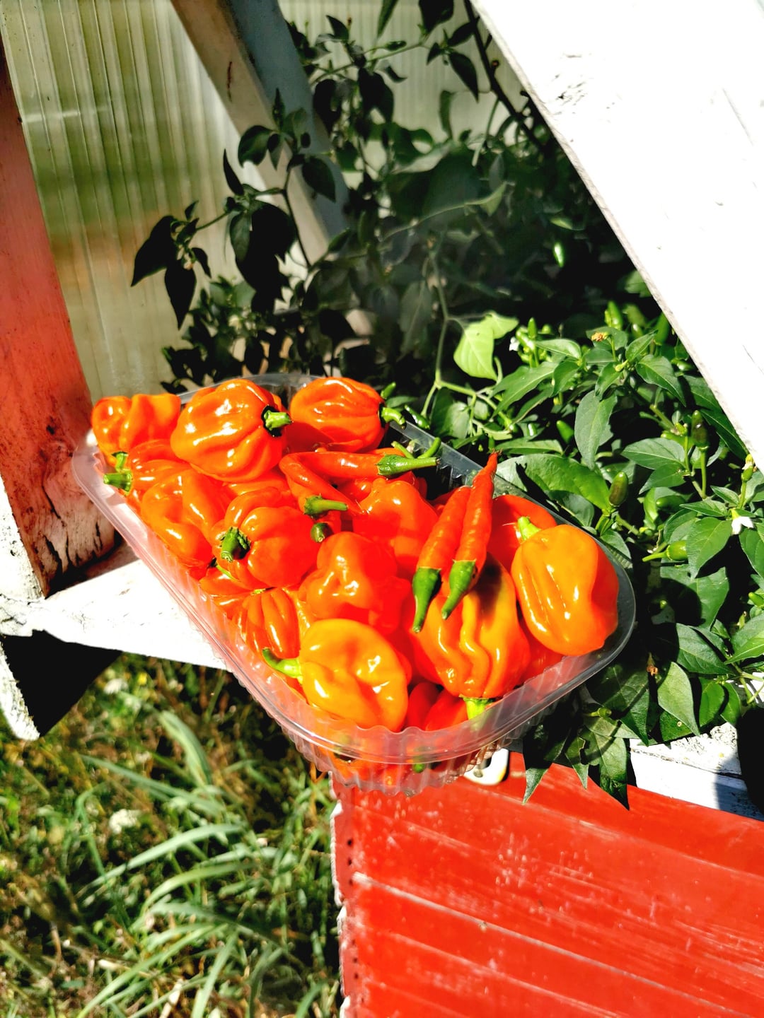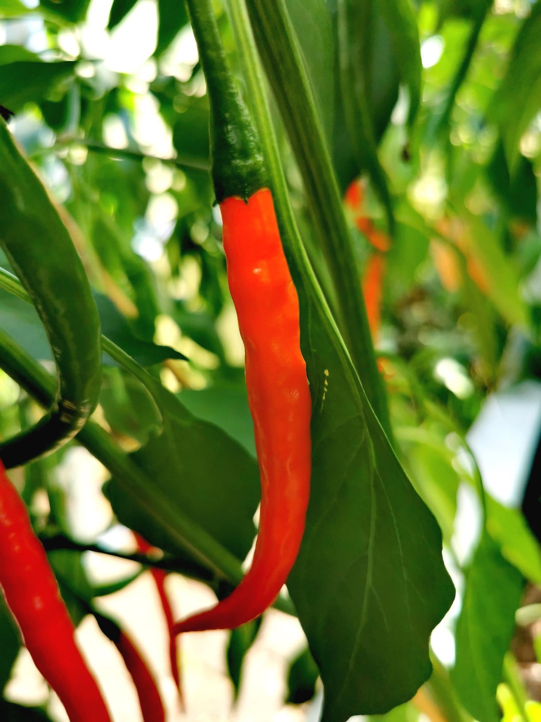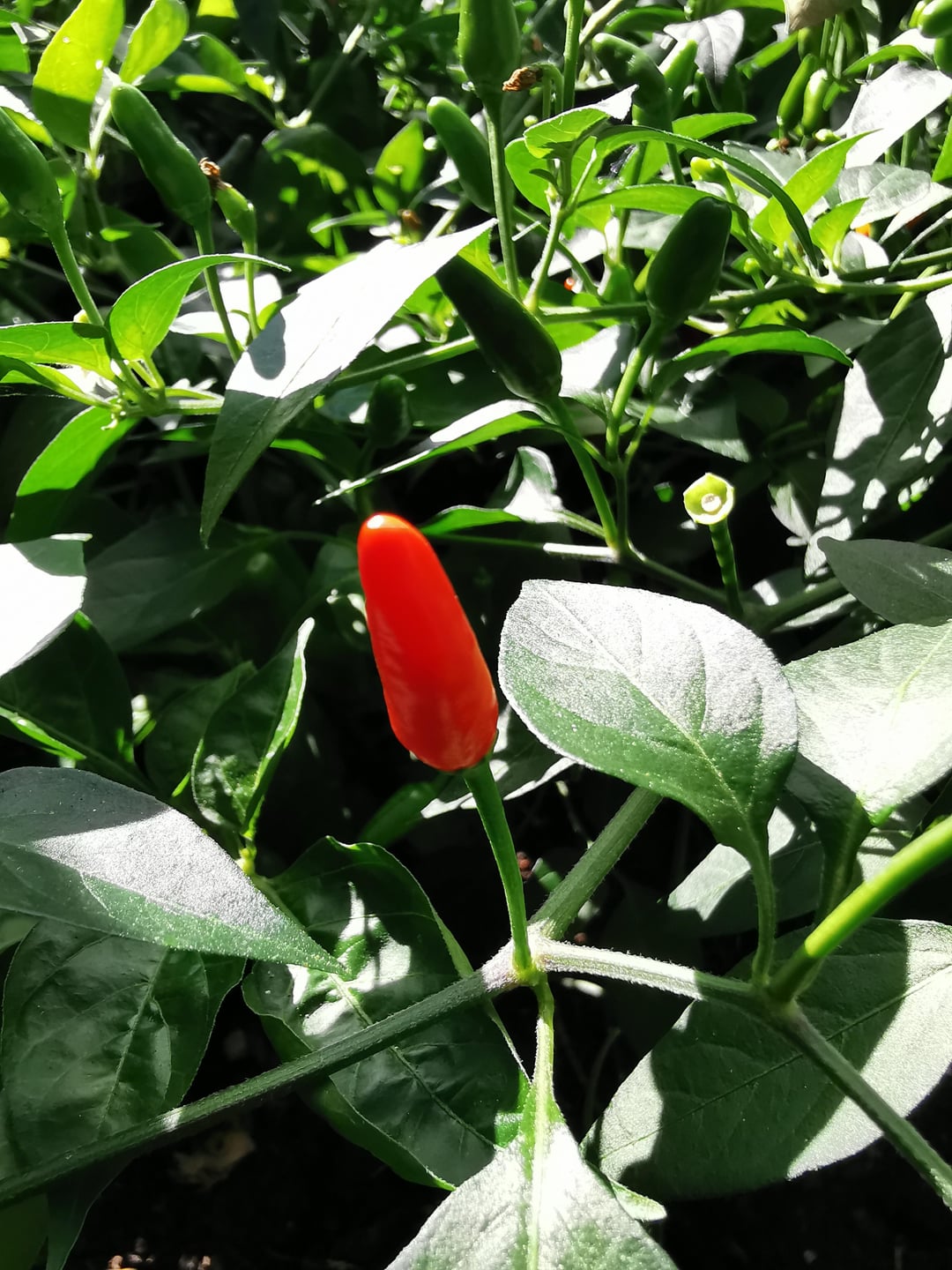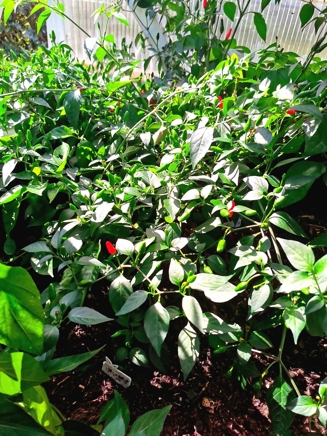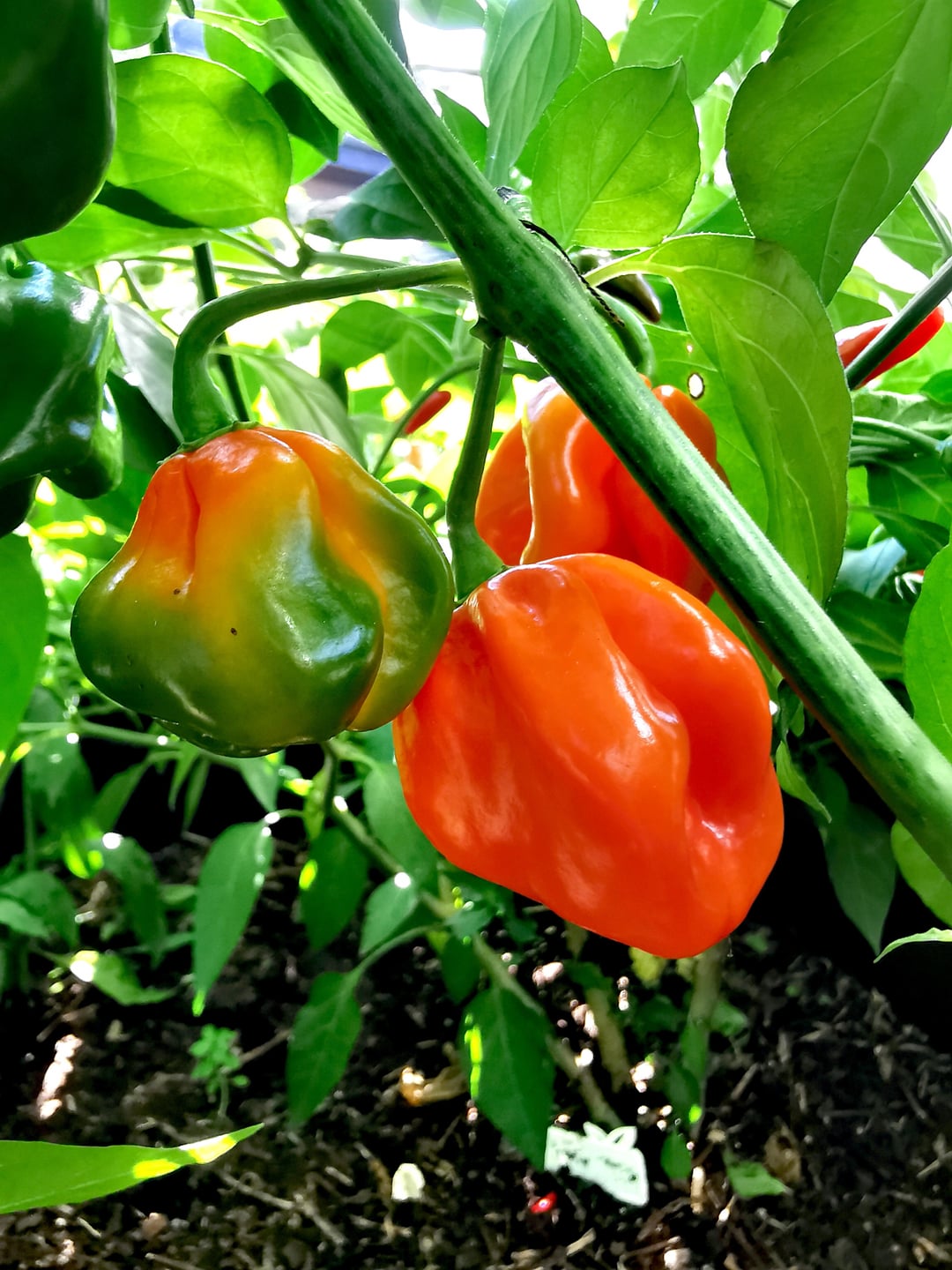 The Piment Antillais plant was sown in march 2023. I kept it indoors all over last year (it grew three fruits, yay! 😂). The Egyptian peppers were sown in march 2024 and put outside at the end of may aswell. I sowed the pequin in october 2023. All three plants were put outside this year at the end of may after the last frosts in a raised bed with a roof.