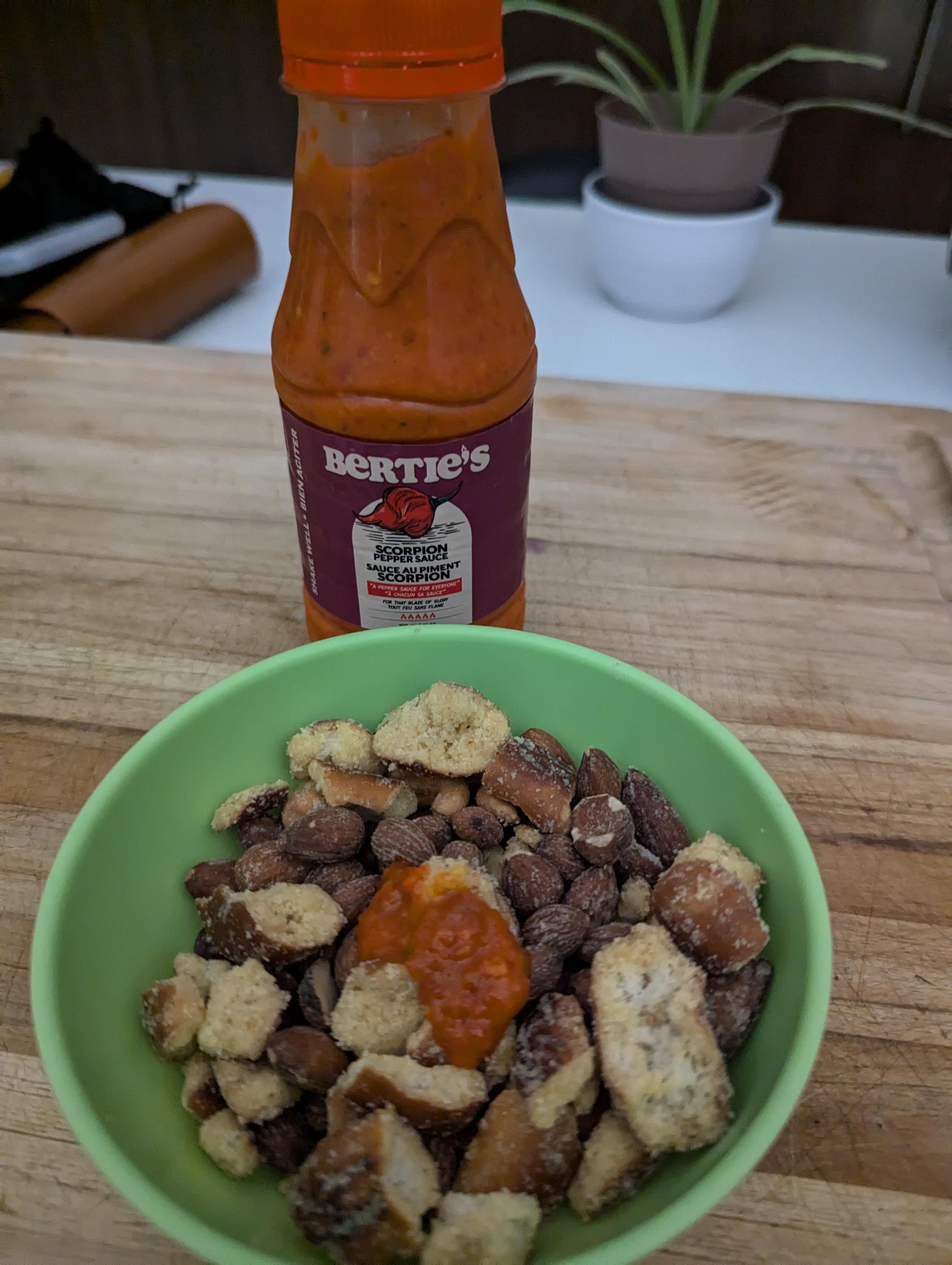 My snack consist of mixed nuts and pretzels pieces for those wondering