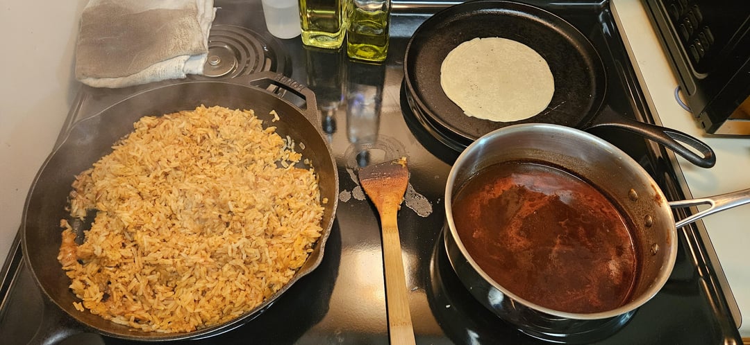 Chicken enchiladas, rice made with the stock, and crockpot beans (ArnieTex). I could eat about 10 plates!by Chocko23 Write A CommentYou must be logged in to post a comment.
