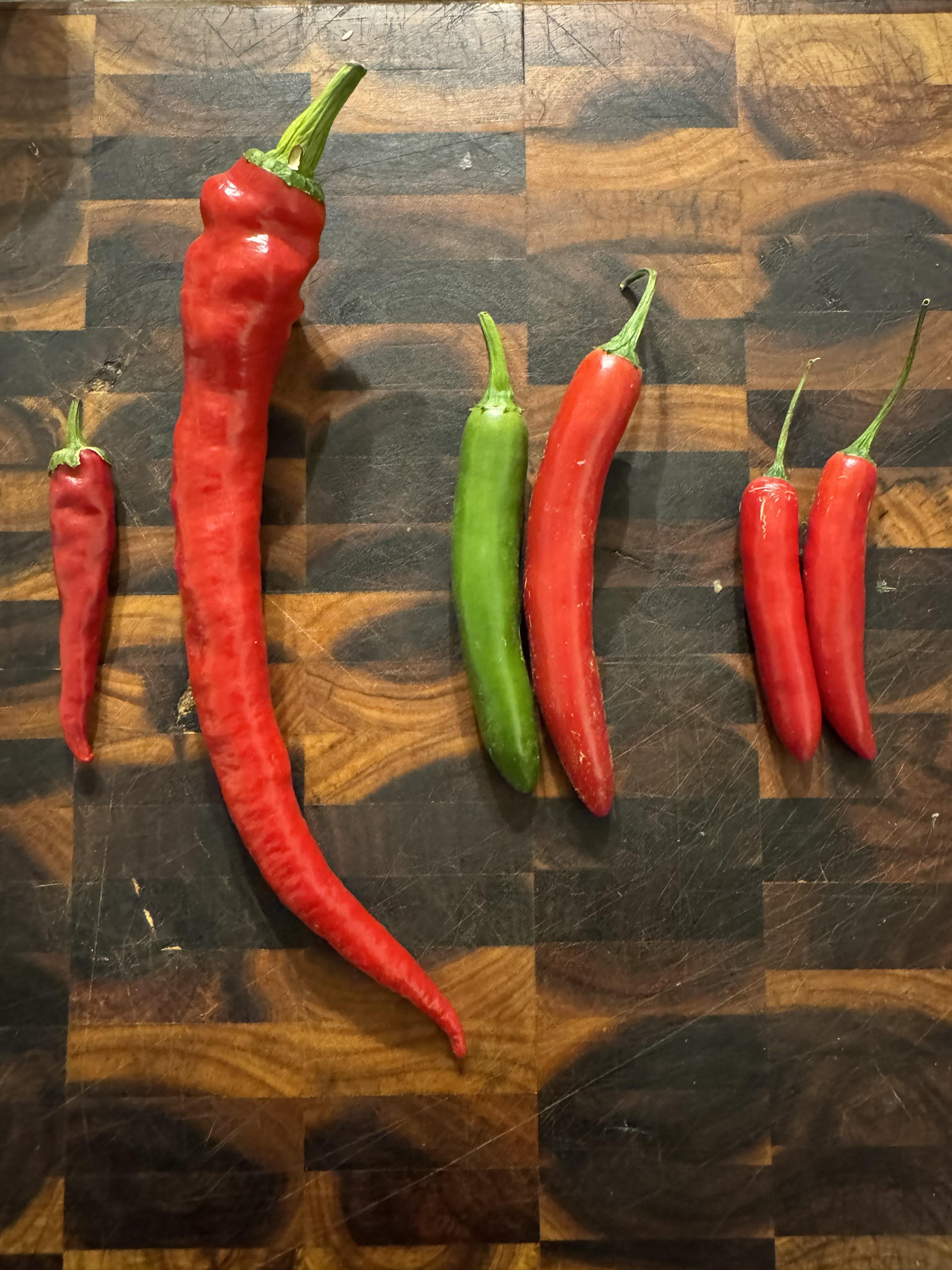 Hi there, looking for ID on the 3 pepper types to the right of the cayenne in the picture. Cayenne pictured for size reference. The largest pepper pictured is about 10”by trentanious Hot peppersPeppersSpicy Stuffsweet peppersWrite A CommentYou must be logged in to post a comment.