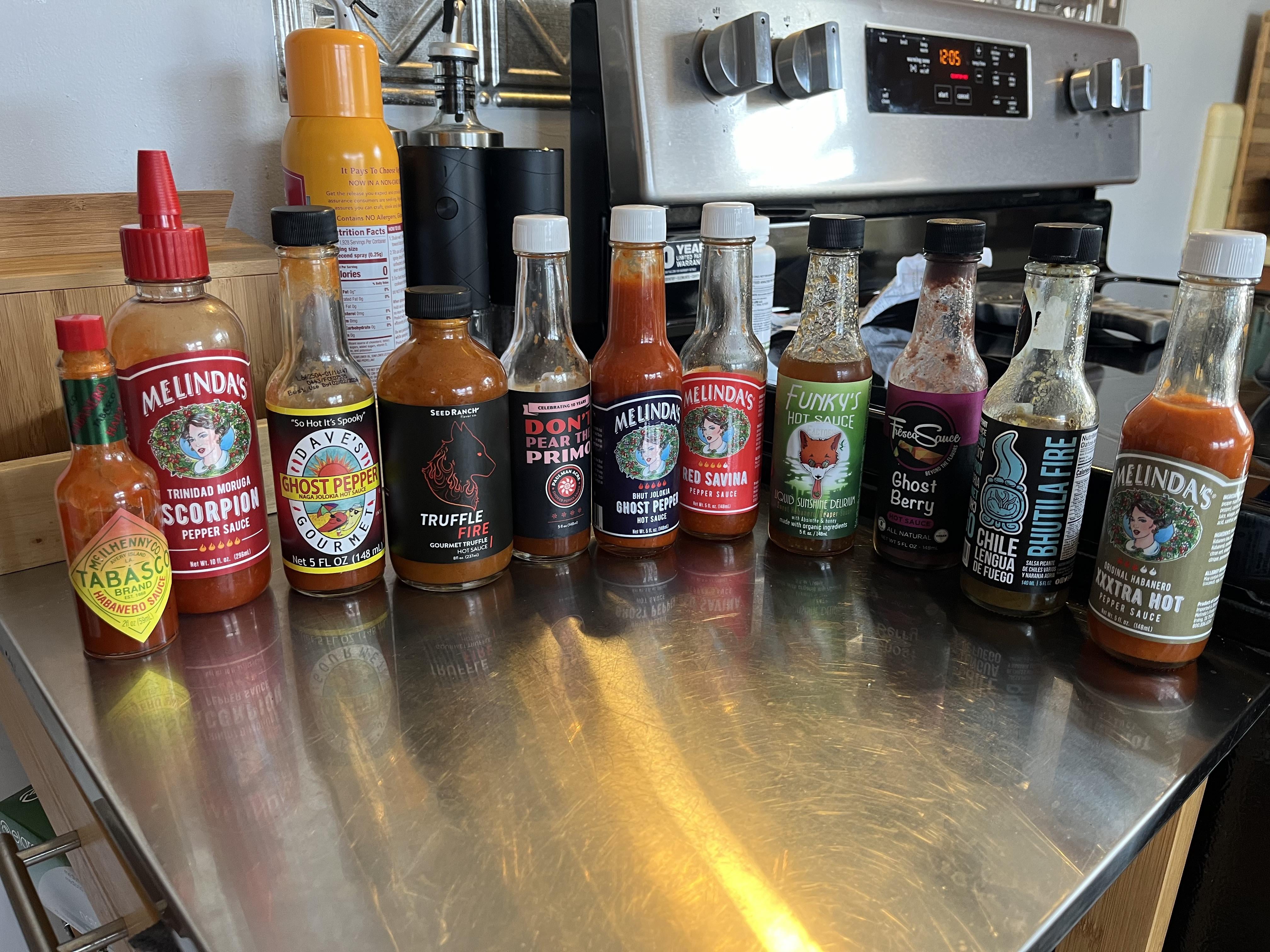 Wish I could save all the hot sauces bottles we’ve ever had for a cooler picture. My go to is Tabasco habanero, I buy 6 bottles at a time which lasts me probably 2 months before I restock lol. I did Fuego box for a little over a year. It’s not cheap but it’s really fun getting the box each month. I chose the order where we get 2 sauces a month at the hottest level. My boyfriend is an absolute extremist when it comes to hot sauce, nothing is too hot for him. LITERALLY! In the photo 5 of them are what’s left from Fuego box. The day he tried the “Dave’s gourmet” one (which we oddly found at a gas station) he said that one might be his limit, or at least he has to go easy on the amount he uses.