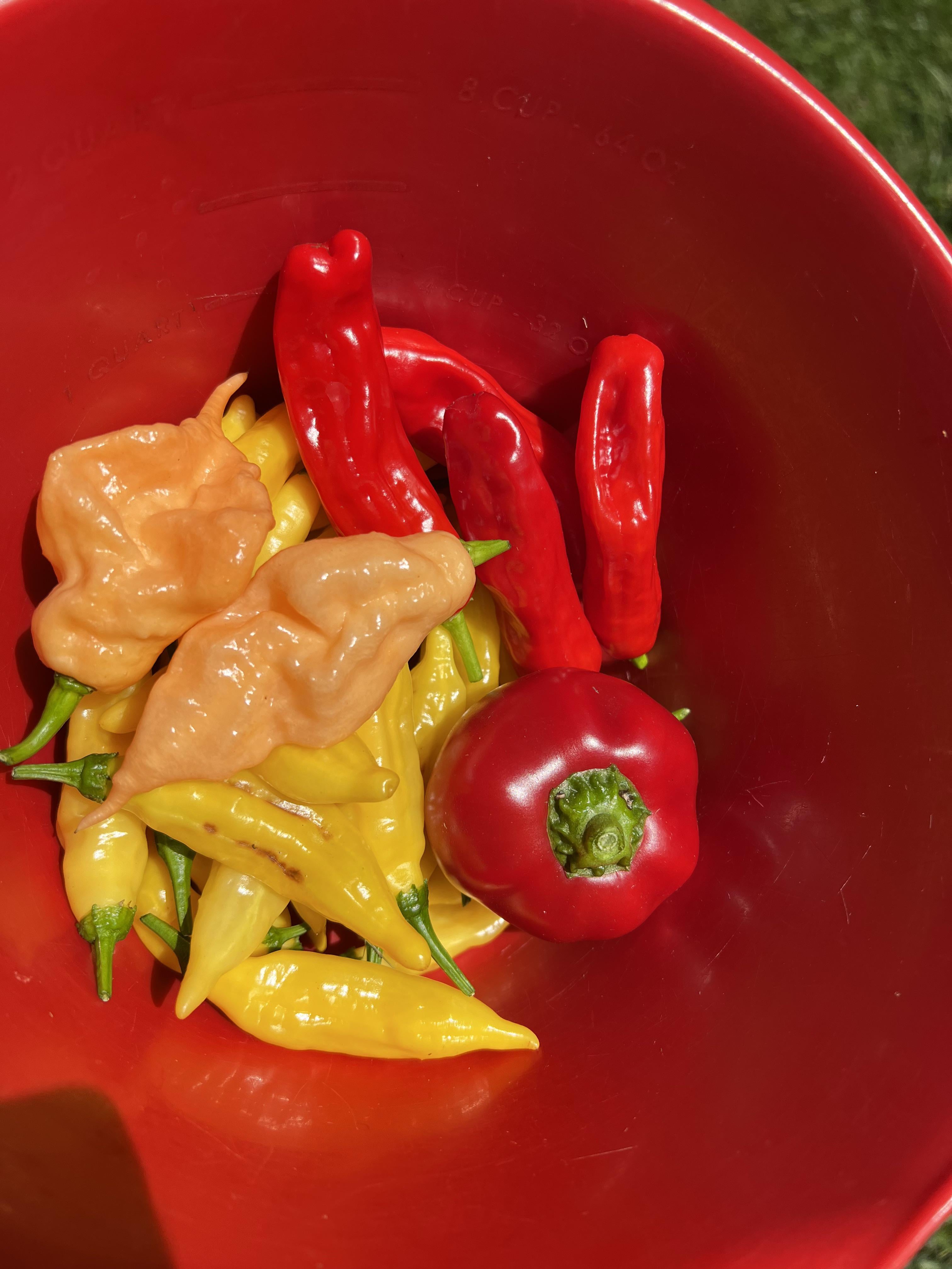 1 pimento, 2 Aji Mango, 4 gorgeous red pepperoncini and a few more Aji Limon!