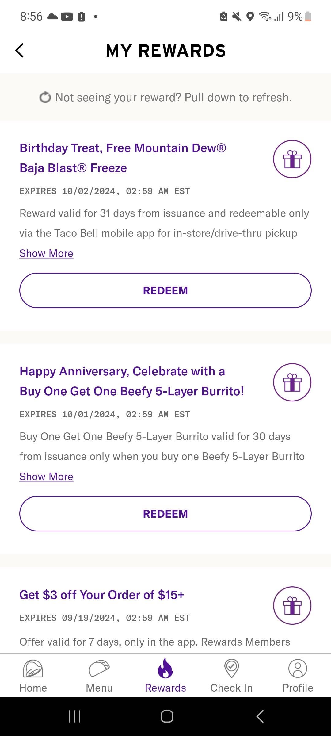 The birthday gift doesn't work since they no longer offer the Baja Blast freeze, if I email taco bell could I get something else?