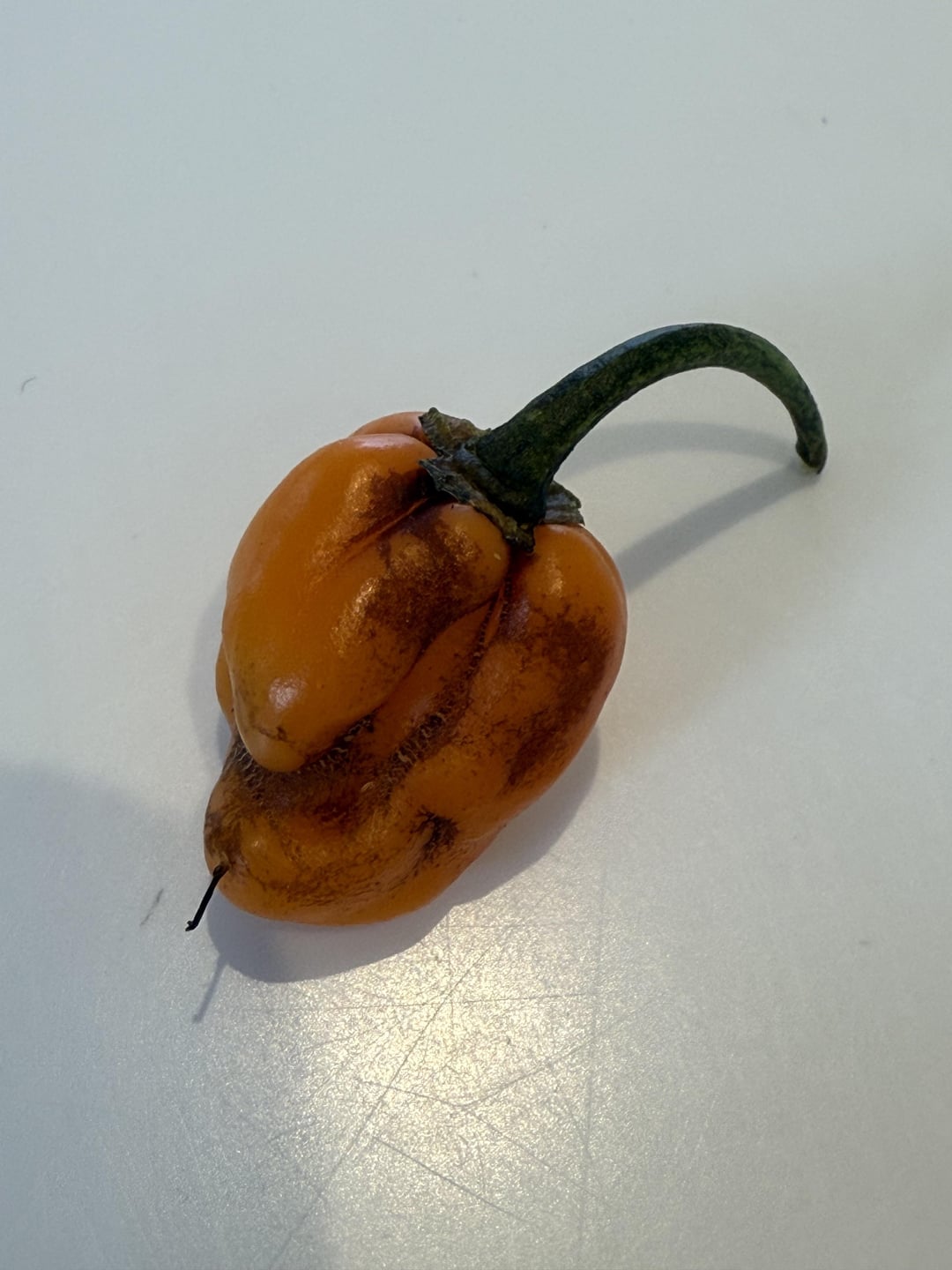 My orange habanero has some brown webbing on some of the fruits and the stalks to the fruits seem darker too. What is this, and are they safe to eat? by Gundlev PepperPepper LoversWrite A CommentYou must be logged in to post a comment.