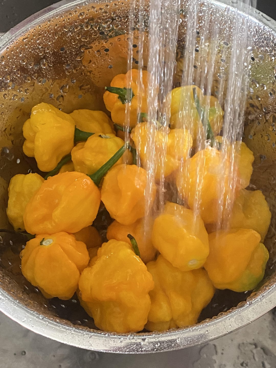 Scotch bonnet peppers, onion, garlic, carrot, allspice, apple cider vinegar, lime, water