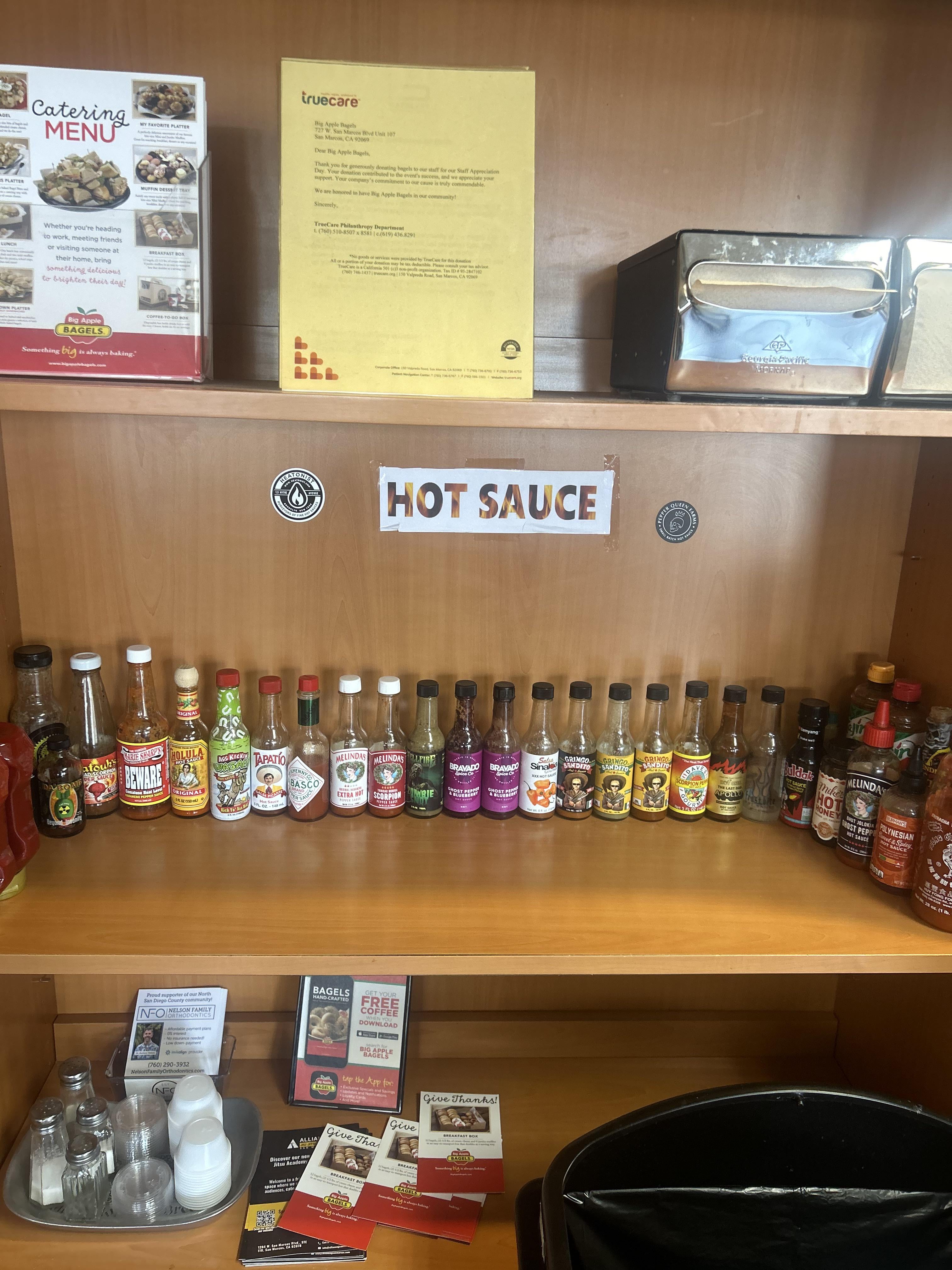 stdio-lib 1 year ago “Do you guys have any hot sauce?”*Cashier points at the girl sitting at the table hogging all 20 hot sauces.*Joking aside, that looks like an excellent selection.