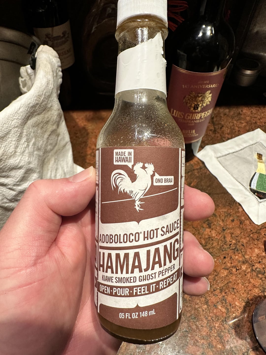 It is on the thin side and delicious. It definitely has good heat, but to me it is not murder sauce or anything. The Kiawe they smoke the bhut jolokia and habanero over gives it a mesquite like flavor which, blended with the apple cider vinegar, garlic and sea salt is IMO fantastic.