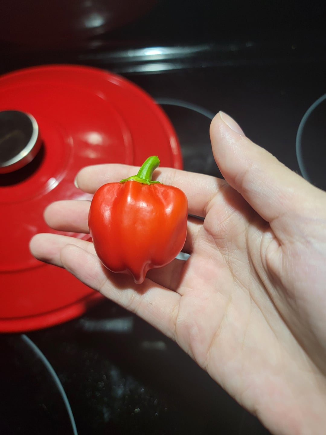 It doesn't look like any of the peppers I've planted so I don't have a clue what has grown. The only peppers I have that are close are my burped real deal and red habaneros. Looks closest to my habaneros but still the peppers on this plant all look like this and my habaneros don't look like this