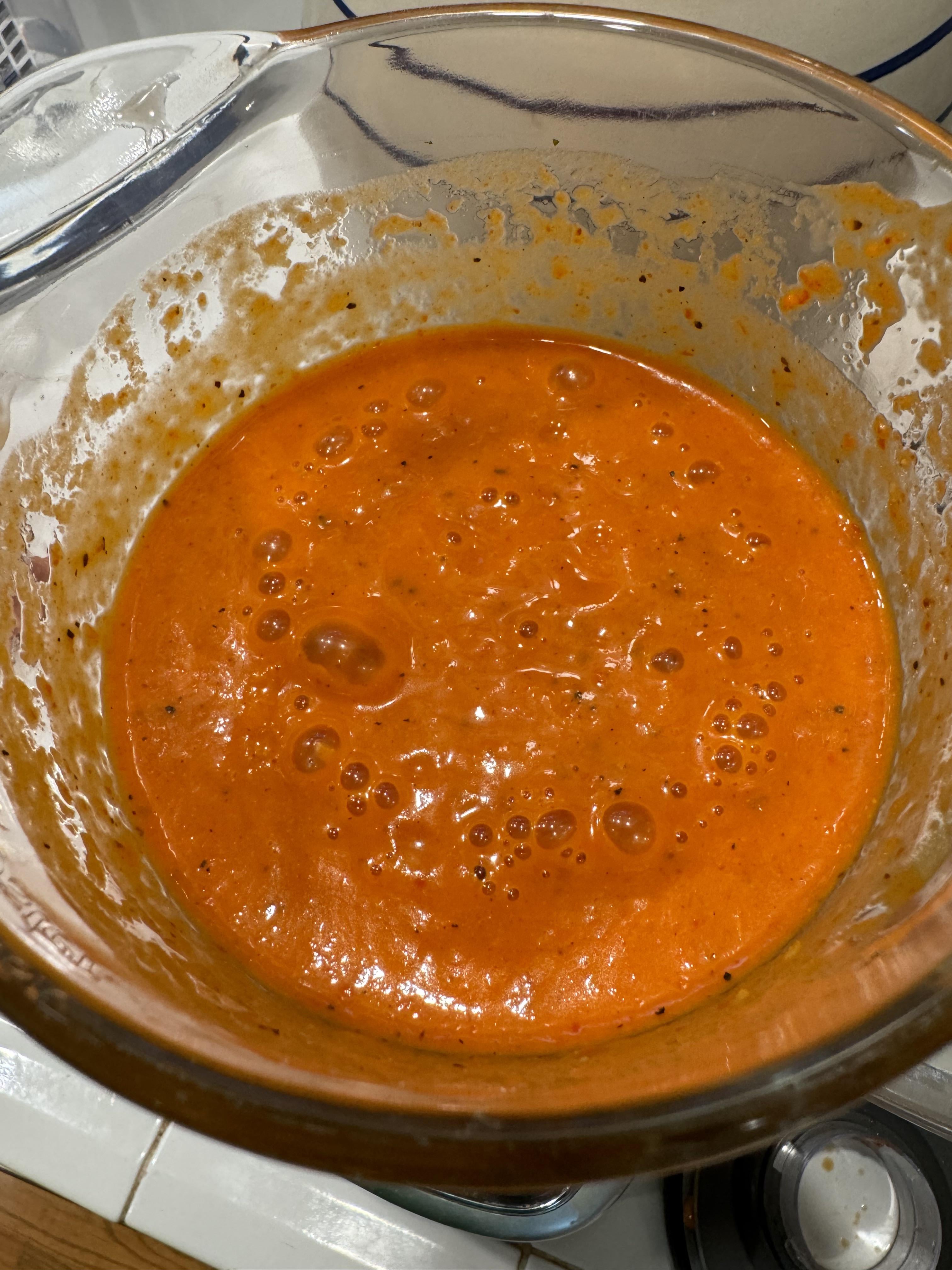 Been at it for a minute, still haven’t fermented but that’s up next. This one is the hottest and tastiest one yet. Homegrown Ghost with red bells, papaya, ginger root and garlic, all roasted and charred. First taste test was super hot but also delicious.. gonna let it sit for a day and try it again but think this is the one! (This was right after blending, bubbles are gone)