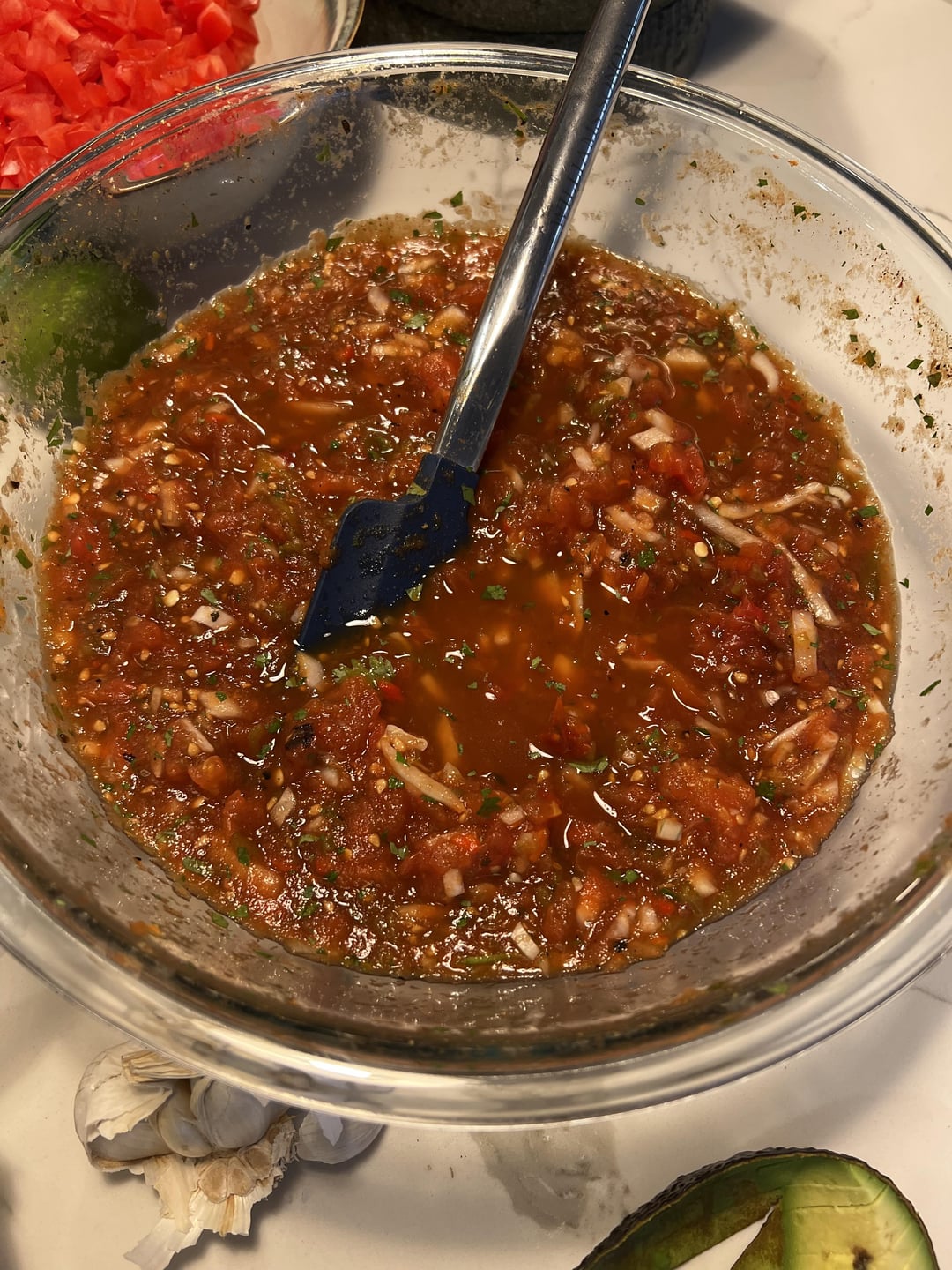 Made my roasted salsa today in my pizza oven instead of on the grill.