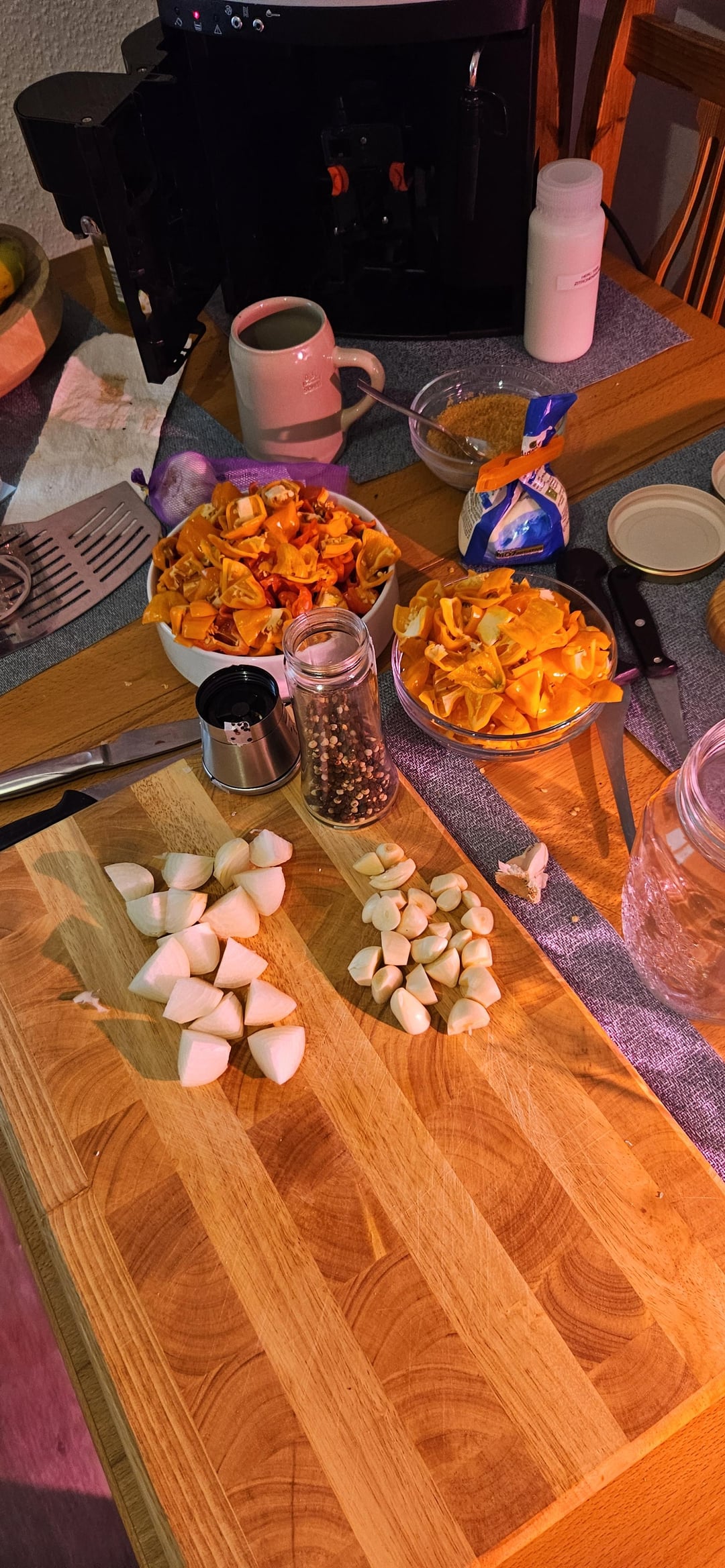 Just fermented all of my habaneros I grew on my balcony this year. Put in some garlic, onions and pepper. Forgot some paprika for sweetness in the fridge but so it is.