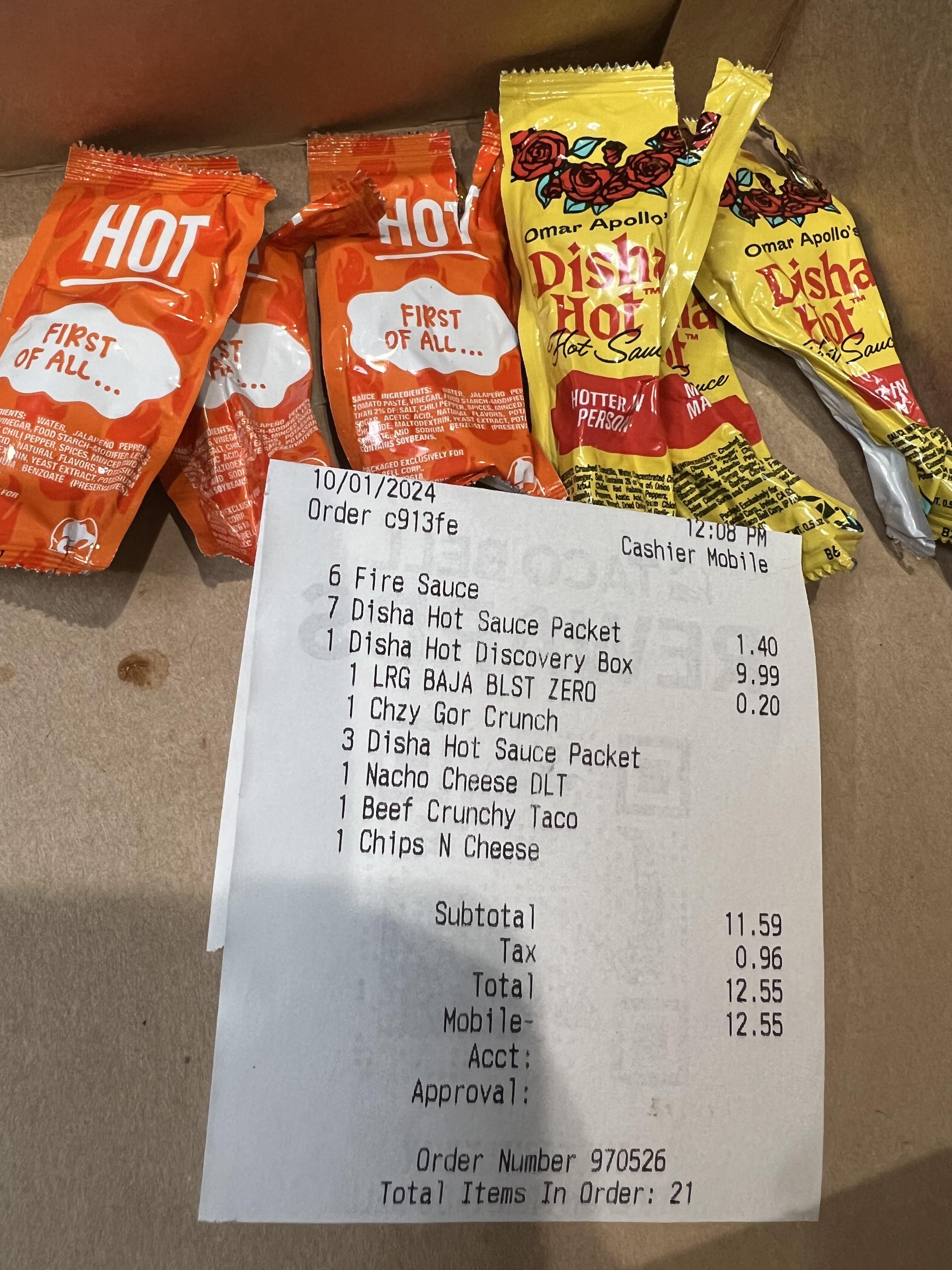I order 6 Fire sauces and 7 Disha hot sauce packets. I receive instead 3 Hot sauces and only 3 Disha hot sauces, even when I got charged for 7. by UniqueXHunter Write A CommentYou must be logged in to post a comment.