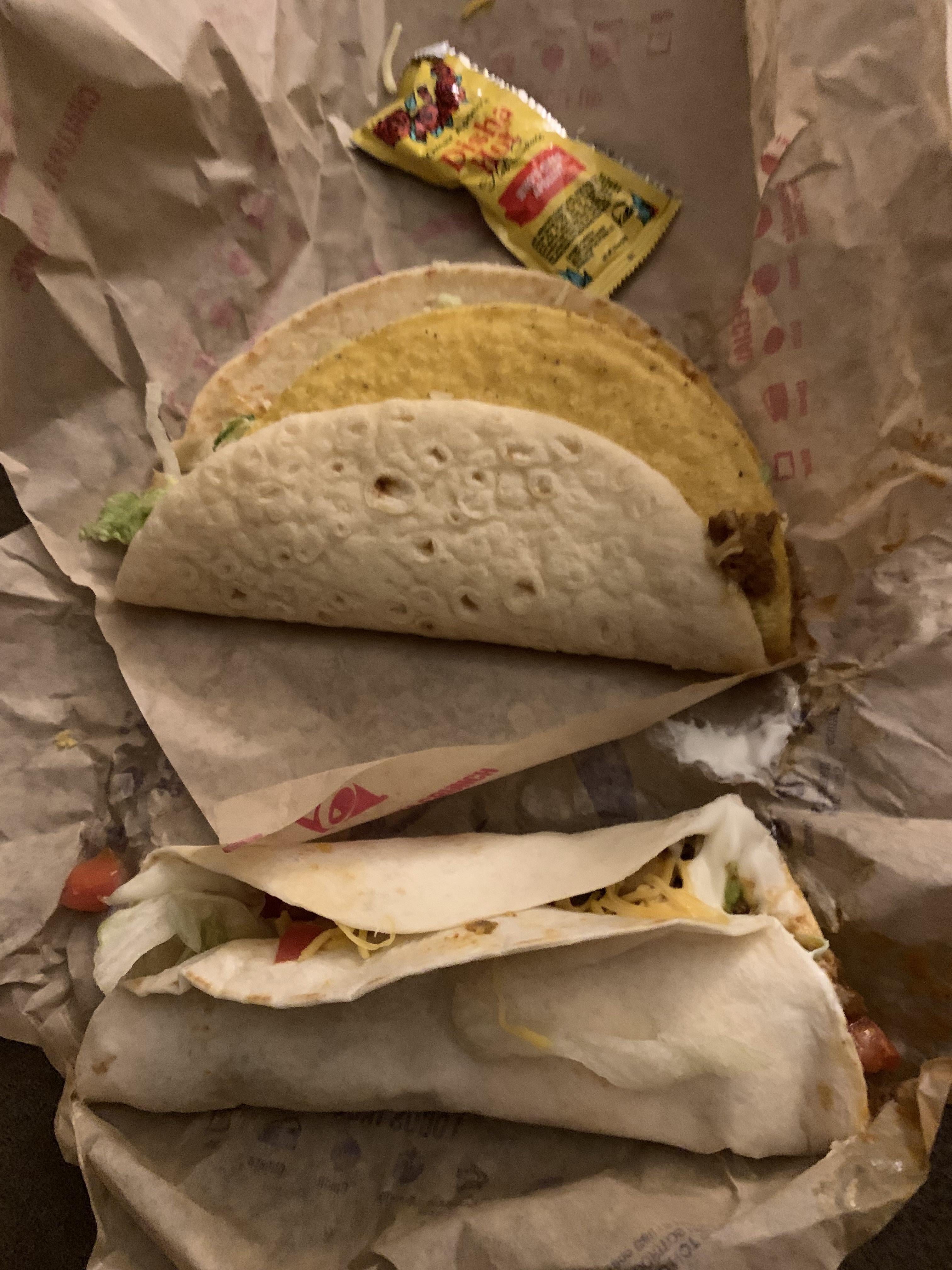 A cheesy Gordita crunch and a really full soft taco. I tried the new Disha sauce, it’s good, but not worth paying for. by TheS00thSayer Write A CommentYou must be logged in to post a comment.