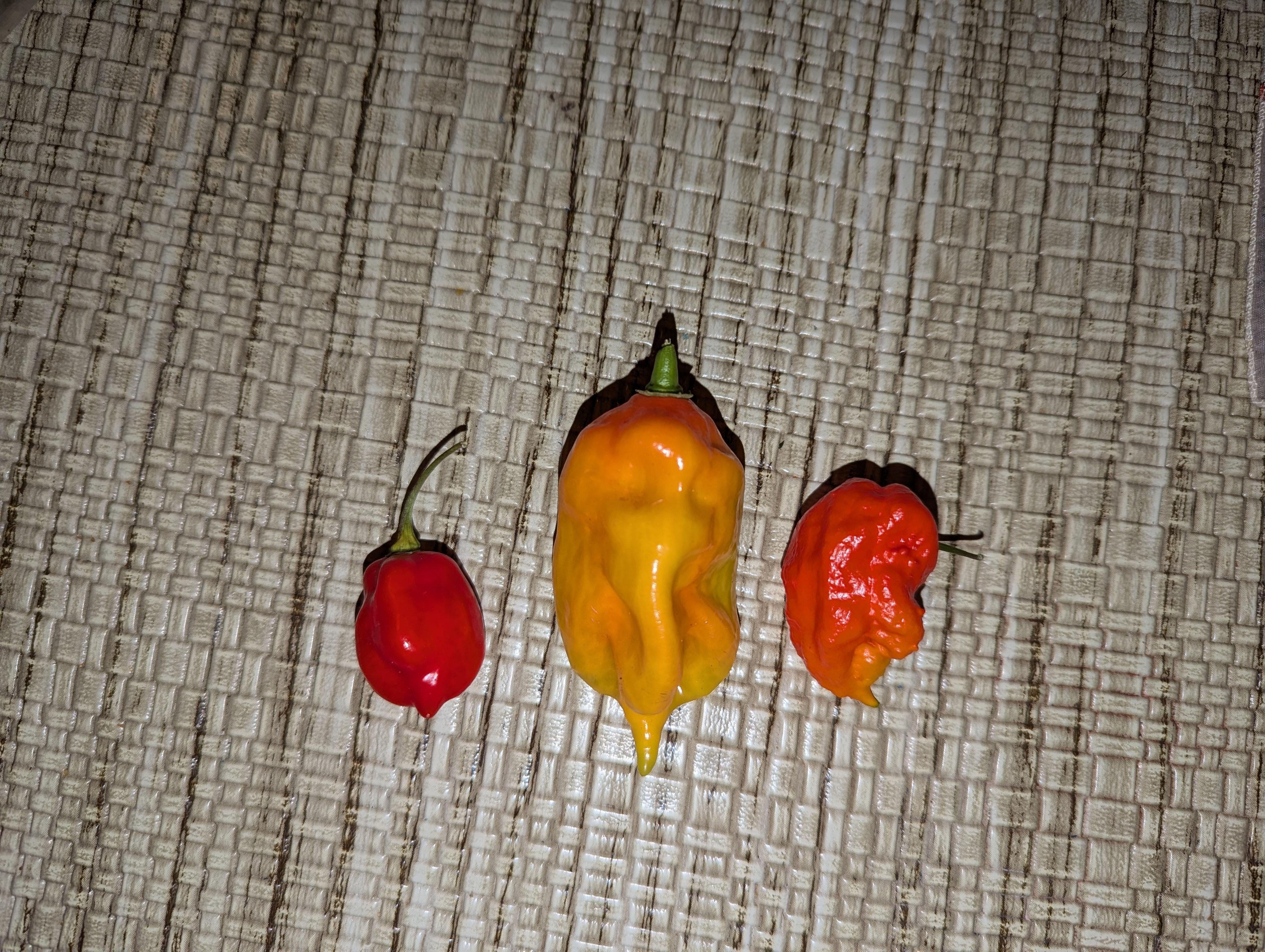 I planted two Hab plants and two Ghost plants. The habaneros from the Habanero plants have all been really small like the left pepper in the photo. The pepper on the right is obviously a Ghost. I am wondering if the middle pepper is not actually a Ghost like it thought I was when I bought the plant. They were both in the same flat at the store. It's a lot bigger obviously and is smooth, not textured like the other ghost peppers I've got. All of the peppers from the one "Ghost Pepper" plant look like this, they all look like a huge Habanero.