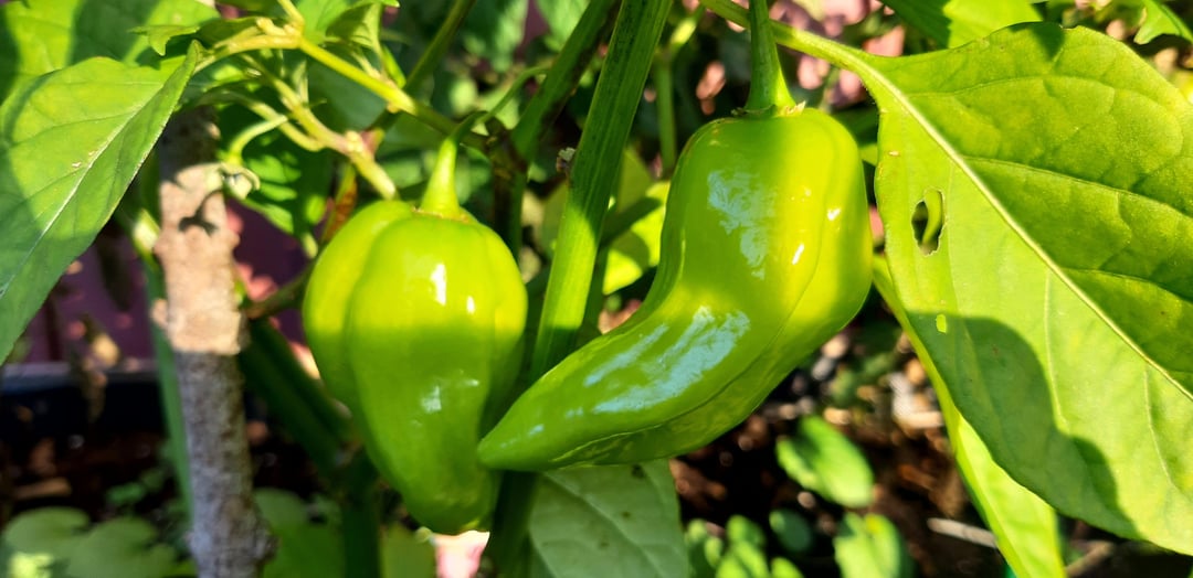 Above plants are from those food store Habanero seeds. First I thought I mislabelled the chilies in pic 2, and that they're where actually Trinidad Scorpion (the small stinger), but my other TS looks different.