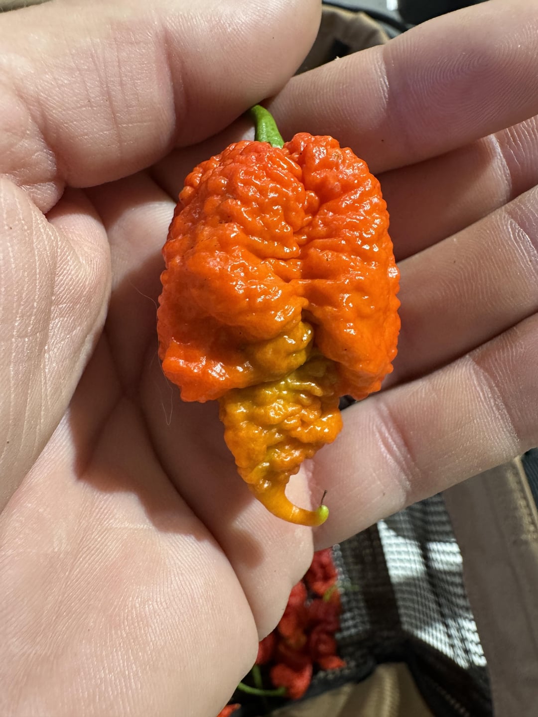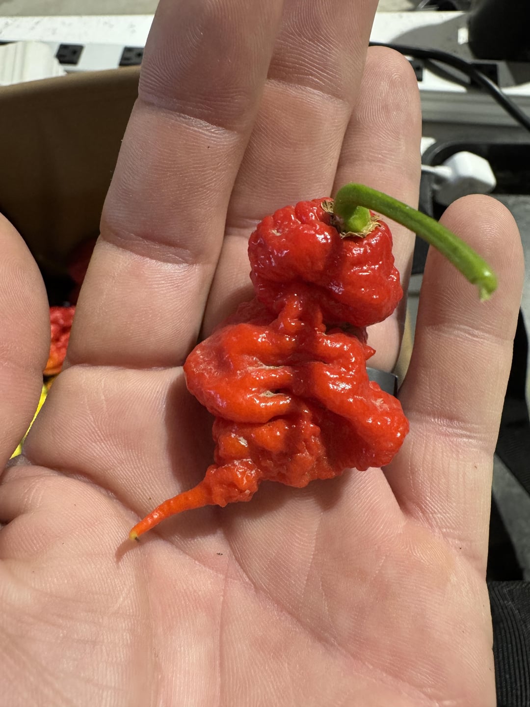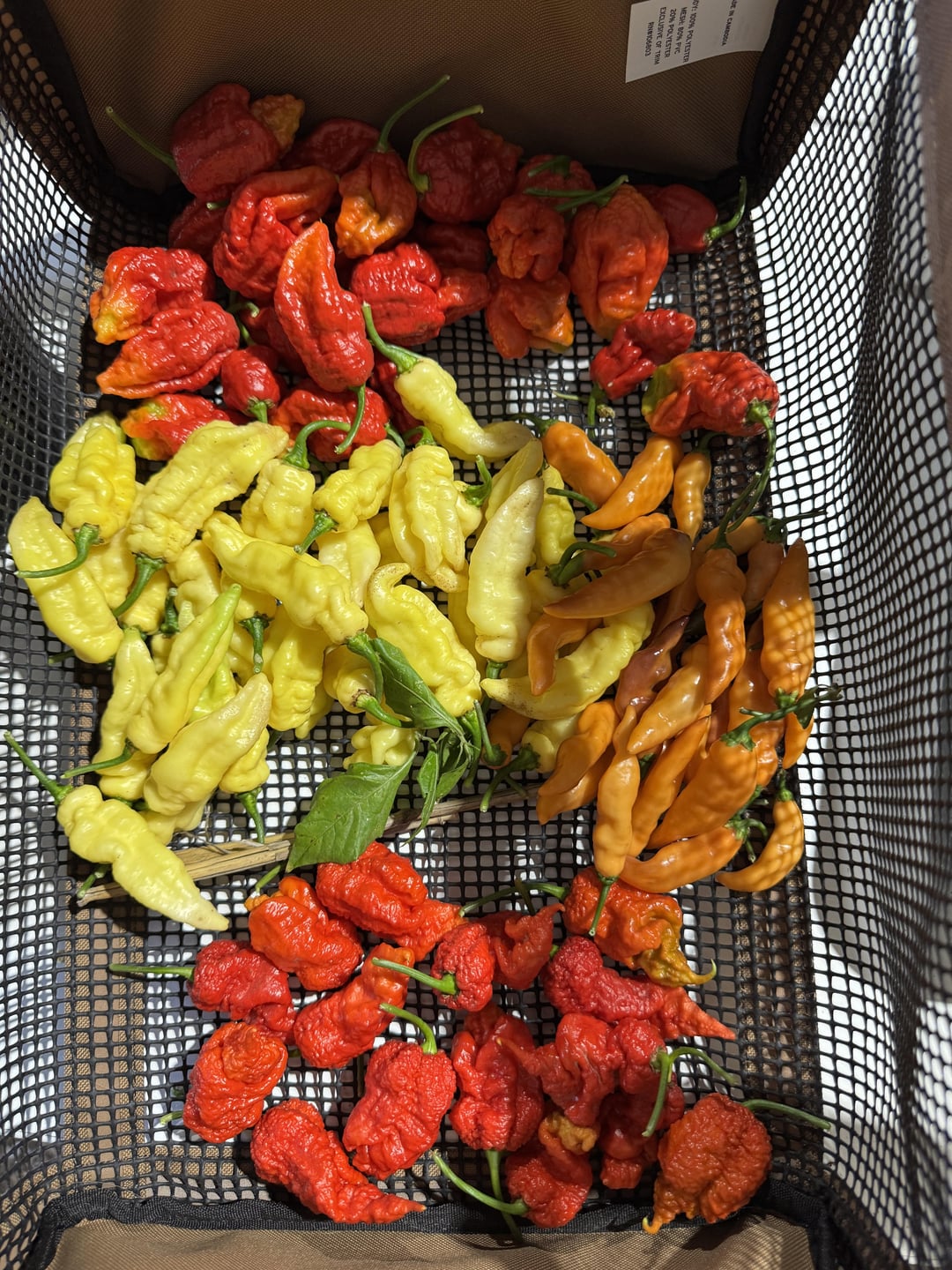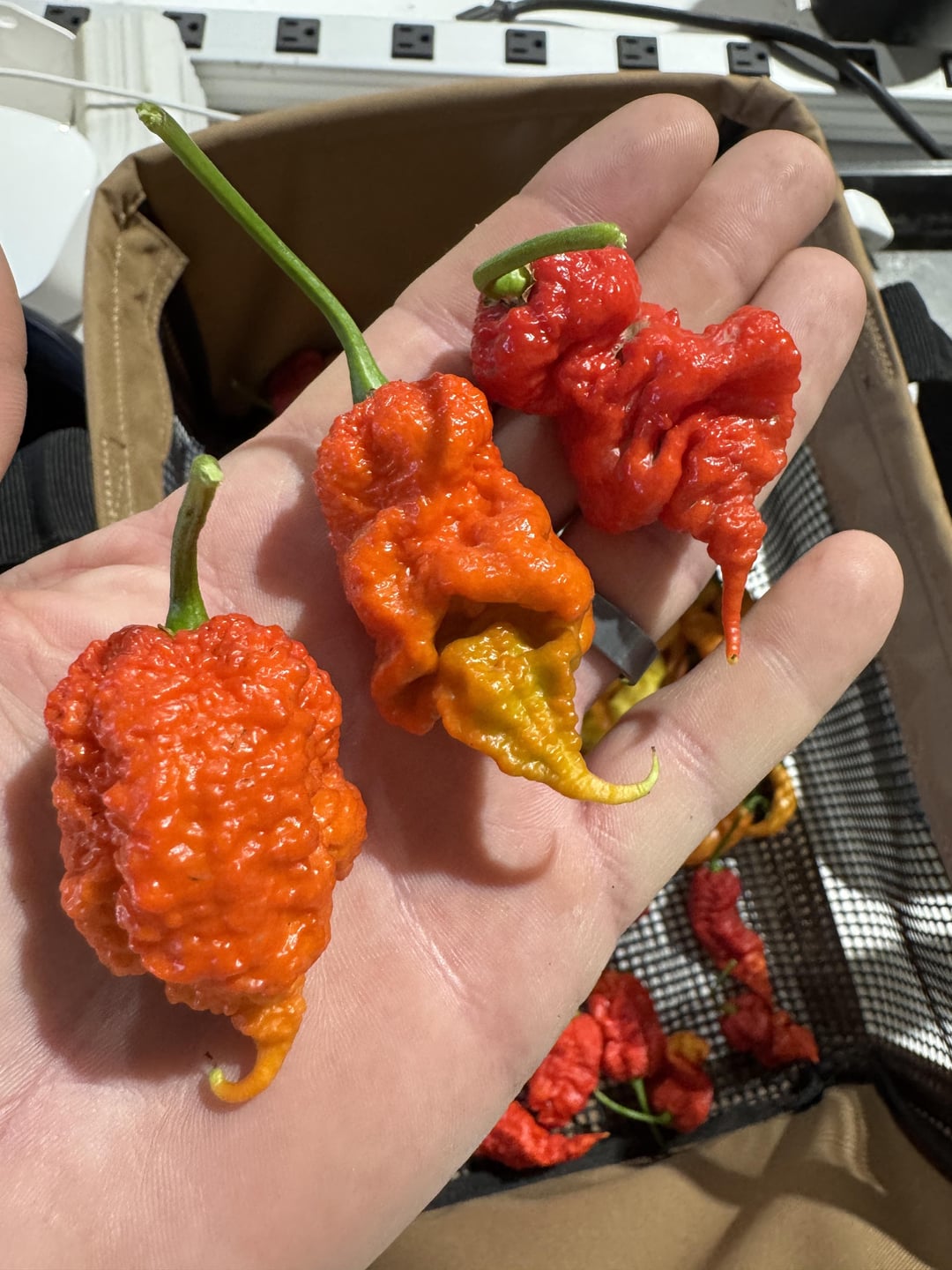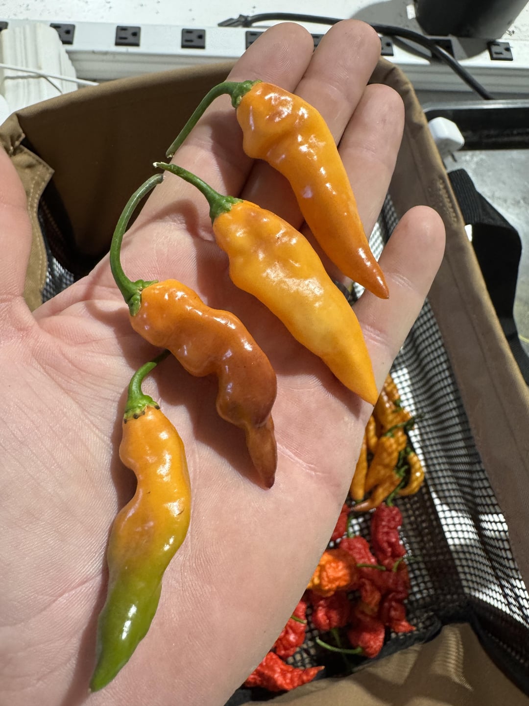 This is the third harvest of these plants and things are slowing down but got some good phenos off seeds that came from a Peach Miasma from last year. From top: Red Naga Brain, White Fatalli, Lightning Habanero Peach x Savina, Peach Miasma (no peach just straight to red!)