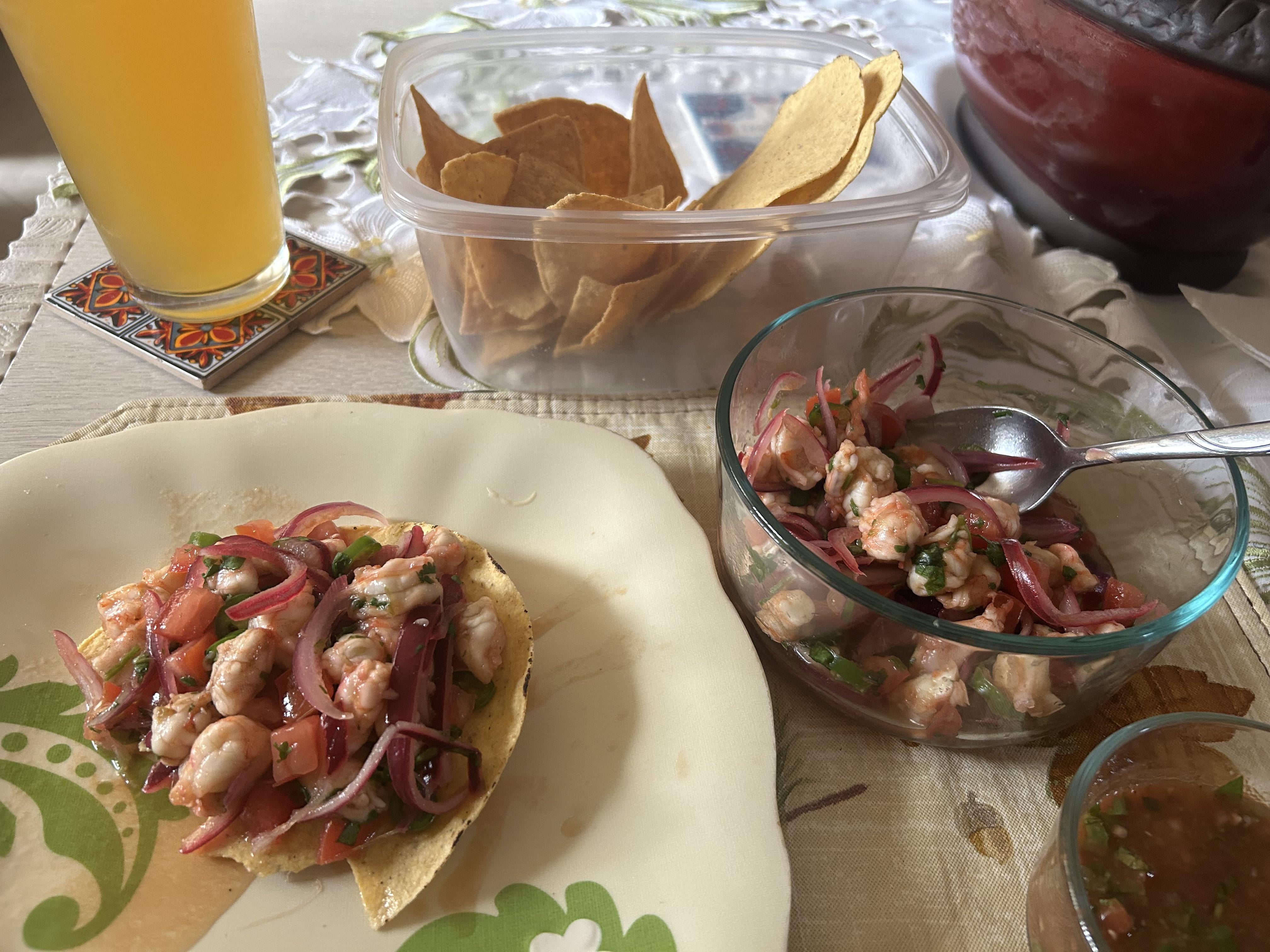 Shrimps ceviche, IPA, and Dodger baseball!