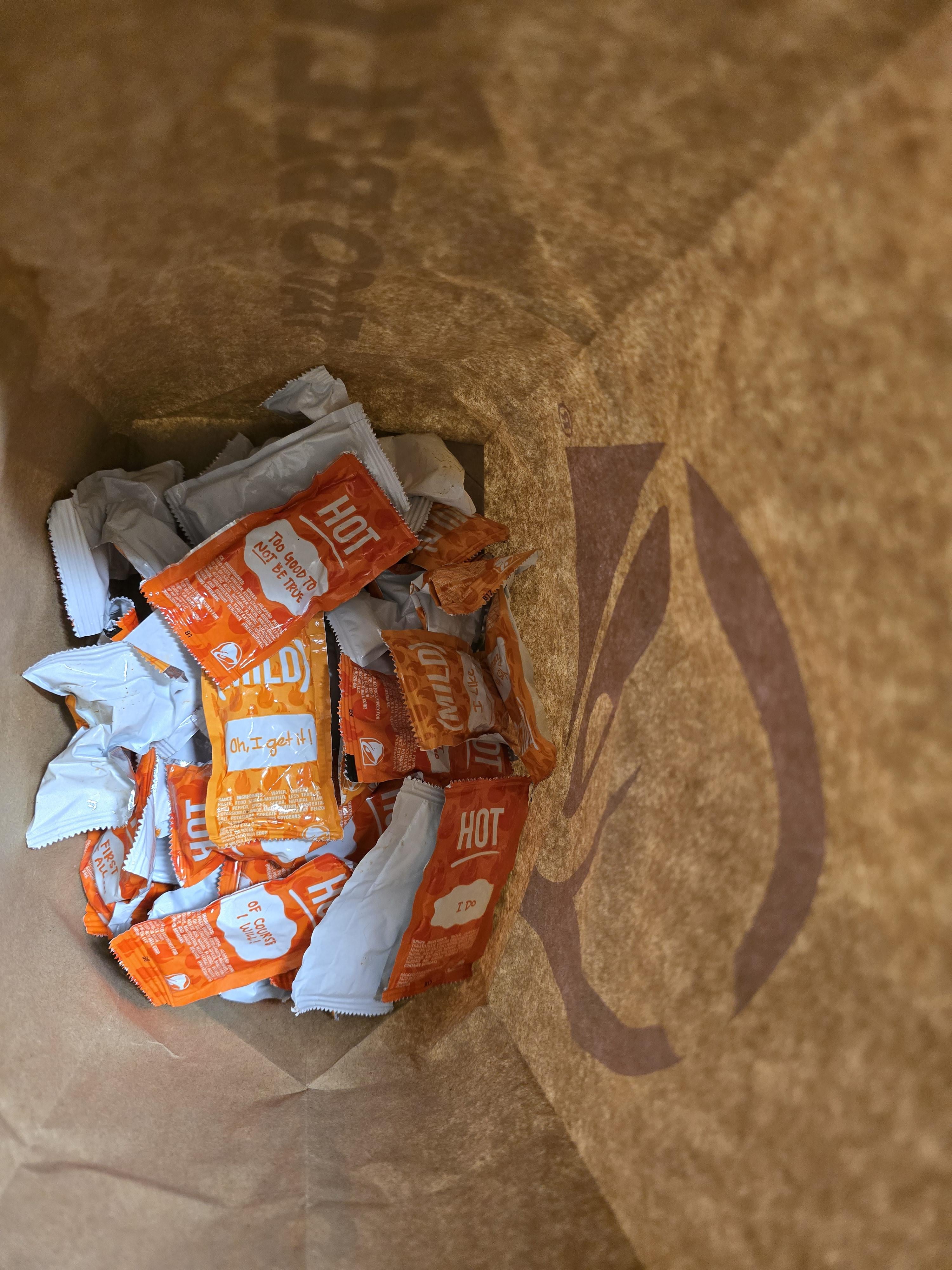 I asked for 3 hot & 3 mild. Shoutout for restocking my sauce drawer.by TacoGuyDave Write A CommentYou must be logged in to post a comment.