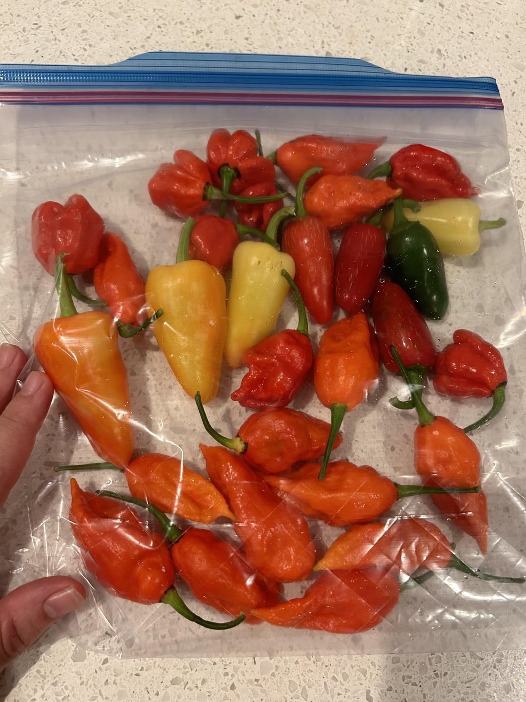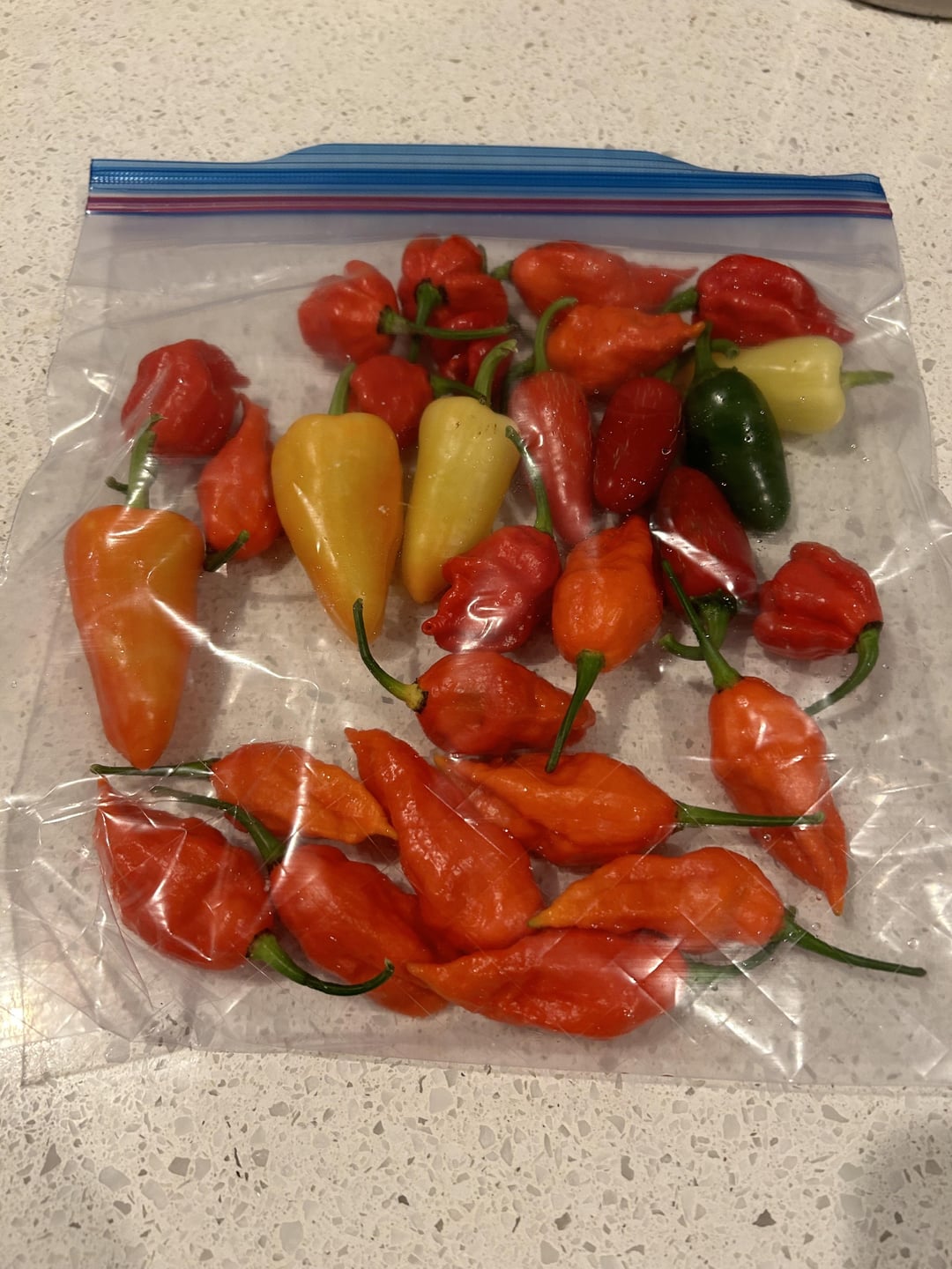 Especially since I’m the only one who eats them 😂. Gallon ziplock for scale. It’s a mix of ghosts, Trinidad scorpion, something called “mariachi” and jalapeños by 30somethingGardener Hot peppersPeppersSpicy Stuffsweet peppersWrite A CommentYou must be logged in to post a comment.