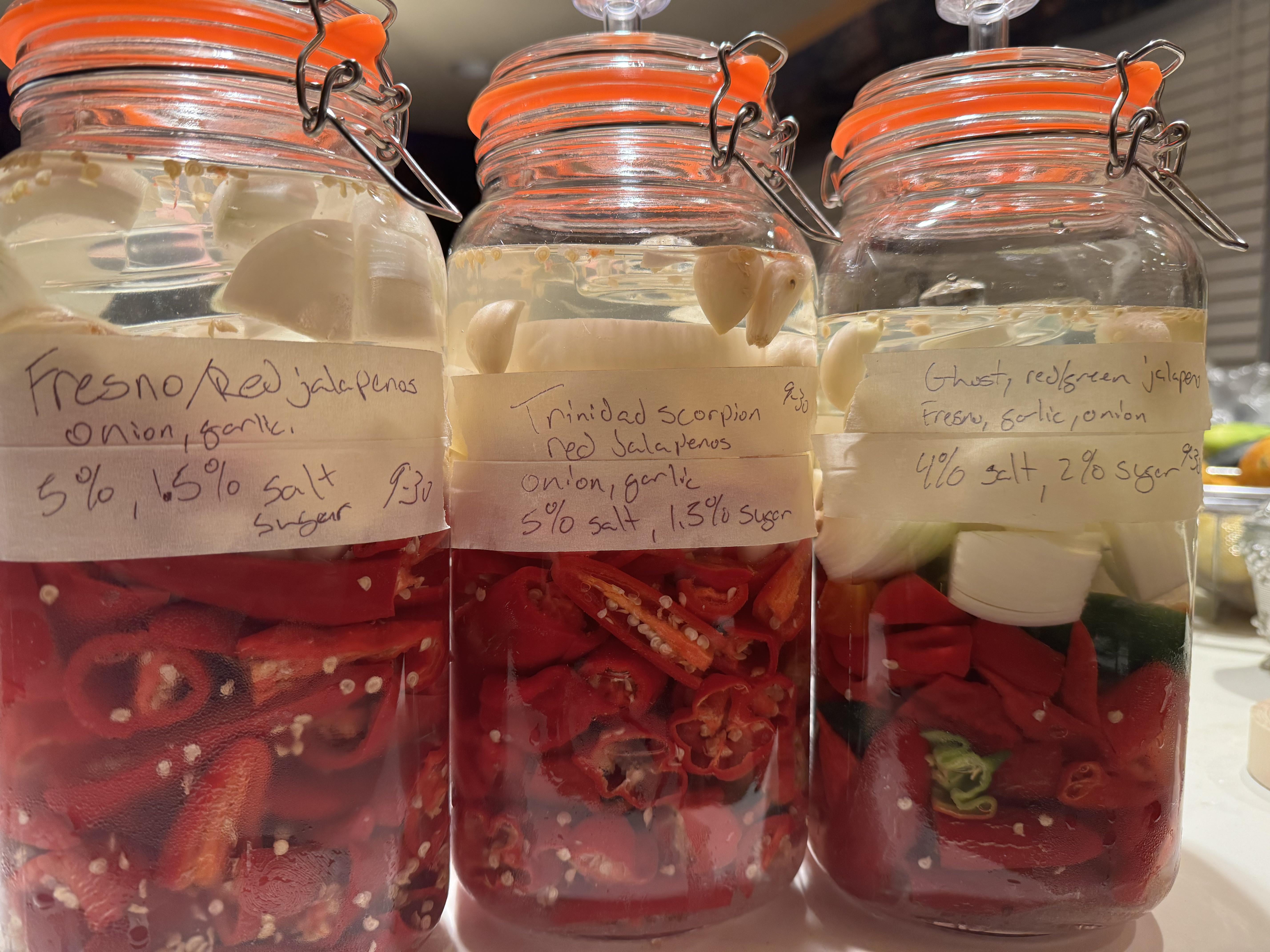 First time making a fermented hot sauce. After a good couple days racking it back and forth in my brain I decided to say screw it, I can always grow peppers again next year if this doesn’t come out how I want. If there is any recommendations or anything yall see I’m blatantly doing wrong don’t hold back! I plan on getting some cabbage first thing in the morning to help fill the top and keep things pressed.
