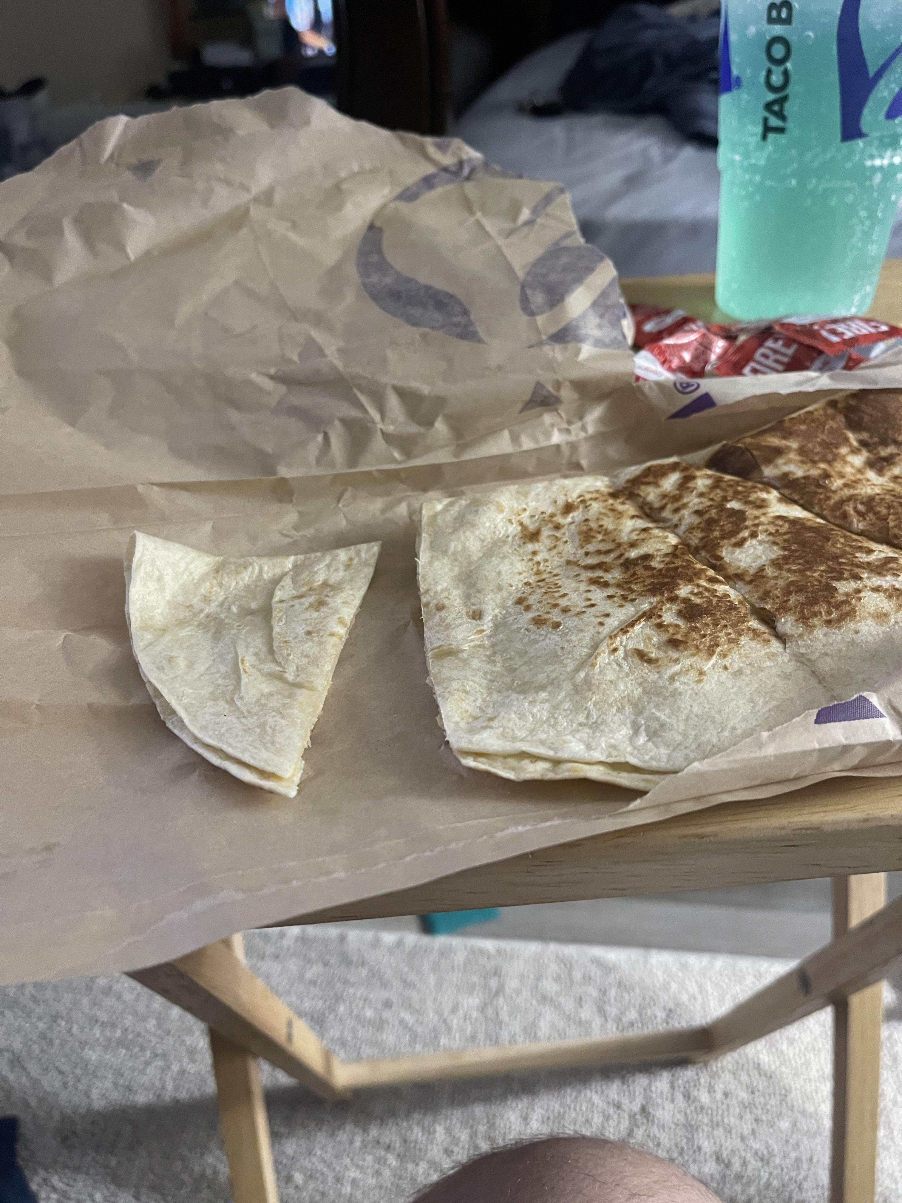 First slice nothing on it, second slice one strip of chicken rest cheeses. Rest of was what seemed like a normal dilla 👍🏻 by Iamtim92 Write A CommentYou must be logged in to post a comment.