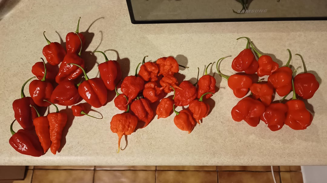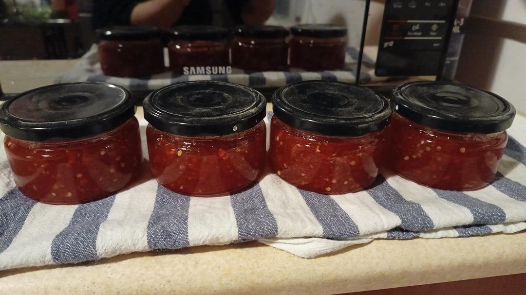 The recipe used sweet peppers as a main ingredient while I used hot peppers only.