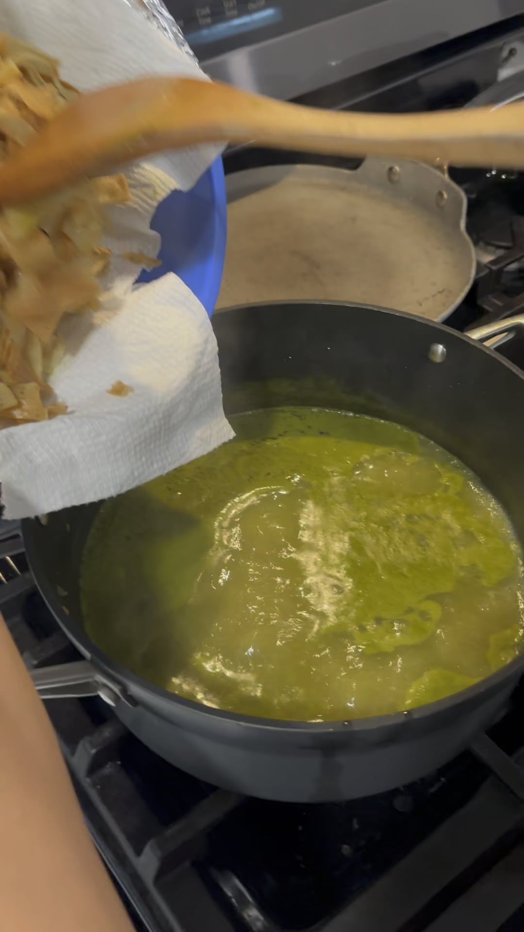 Hey! I noticed that your sauce is a bit runny, and the bright green color, which is less opaque, makes me wonder if you might be doing something different with your recipe. It would usually be a bit thicker and less vibrant. Also, about the advice you received about adding the sauce to the tortilla chips instead of the other way around—that’s actually how it’s done here in Mexico, where I’ve lived all my life. I’m Mexican, and I enjoy cooking, so I’m familiar with the tradition. If you’d like, I’d be happy to share some tips on how I make chilaquiles and tortilla soup! I’m not trying to criticize you; I just noticed some differences from the traditional method here.
