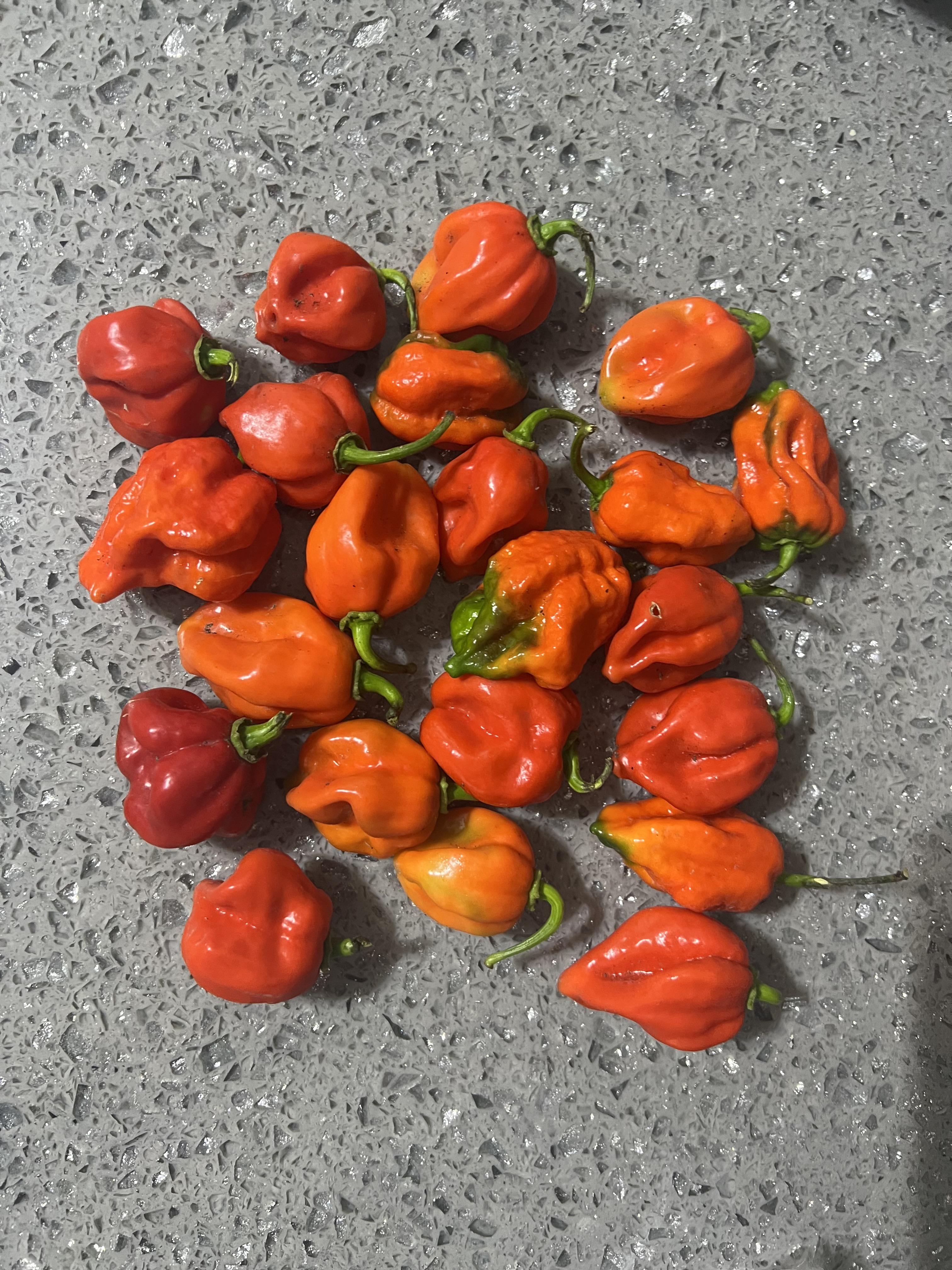 Got this and a lot more from my neighbour recently, was having trouble identifying if they’re habanero or scotch bonnet peppers? Would appreciate the help!by CareerCarrier Hot peppersPeppersSpicy Stuffsweet peppersWrite A CommentYou must be logged in to post a comment.