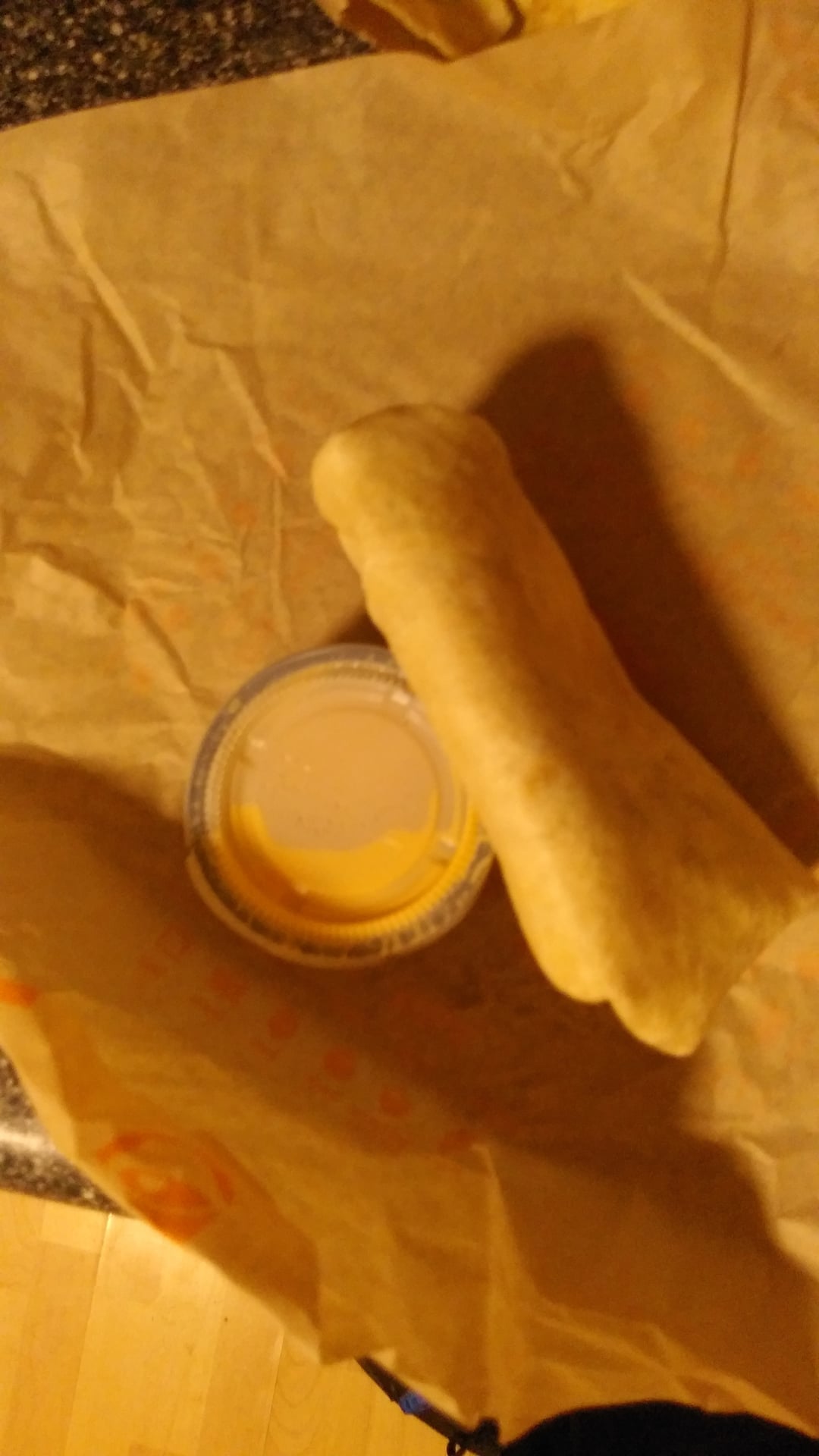 The B5LB is $4 (at my location) and all this thing has is beef, beans, shredded cheese, nacho cheese and sour cream. How can you fill up a burrito with two liquids, shredded cheese, beans and beef? They have this burrito on the boxes for a reason, it’s a pathetic burrito. The only gimmick is the cheese filling or whatever.