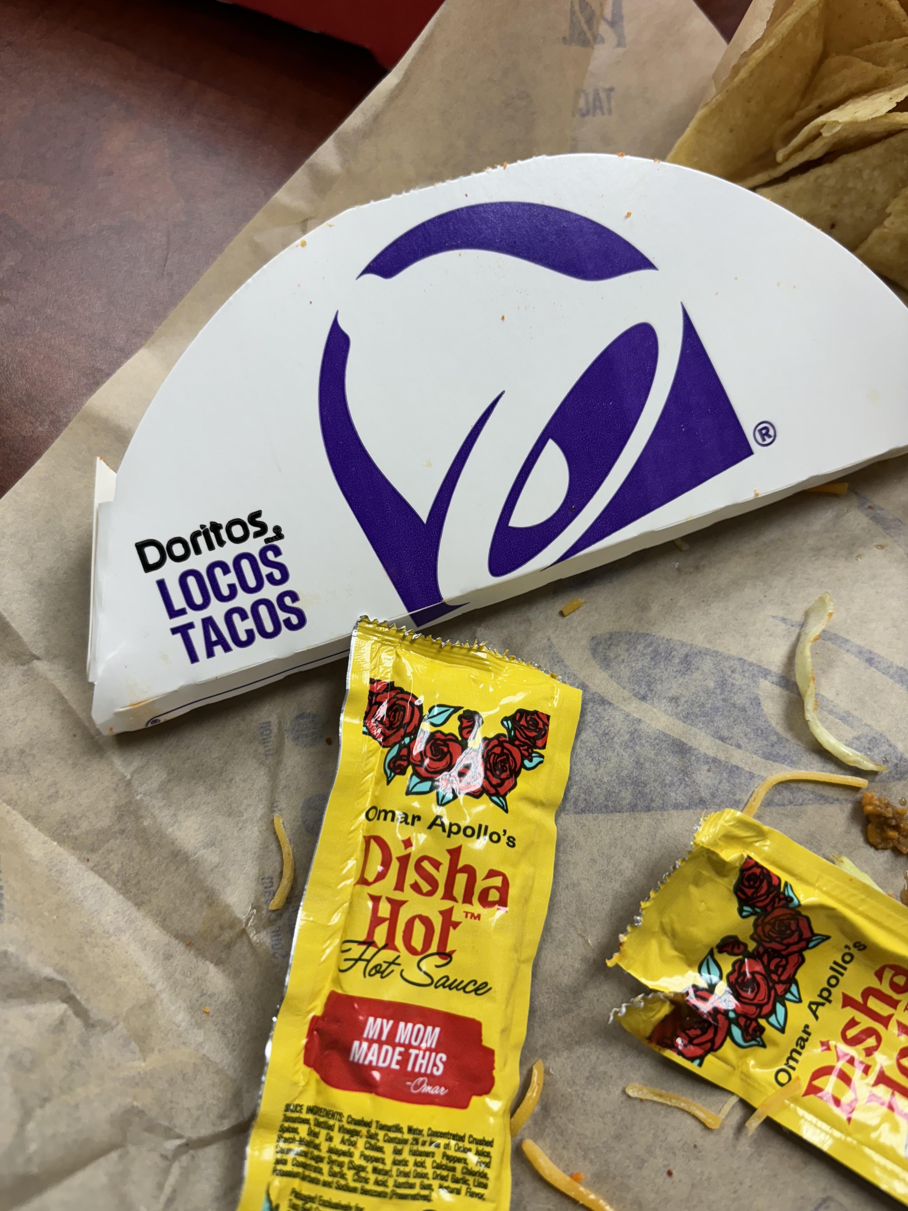 Taco Bell “Omar Apollo’s Disha Hot” box. Sauce tastes great, but pretty mild heat.by TFED360 hot sauceSauceWrite A CommentYou must be logged in to post a comment.