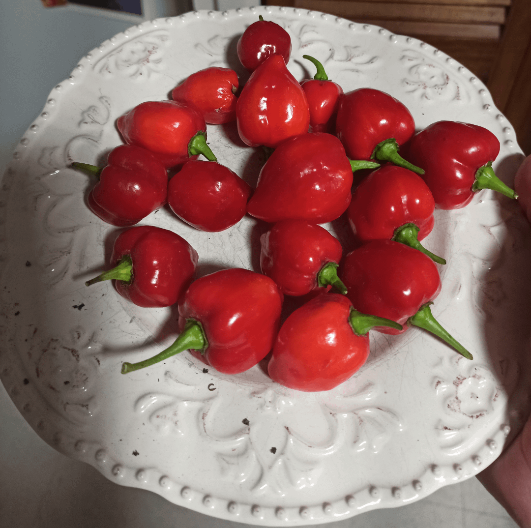 I'm a bit confused though, I'm used to habaneros that are pretty wrinkly and these look so plump! I kept a basket of fire plant nearby, could they be crosbreeds?