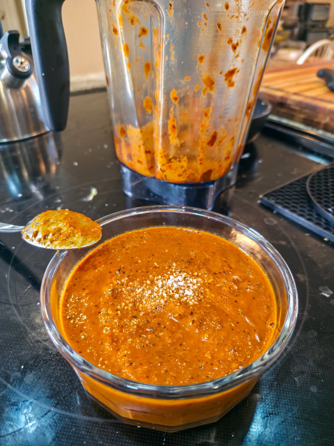 I made this earlier this week from Jonathan Zaragoza’s recipe and it was so spicy it melted my tastebuds off