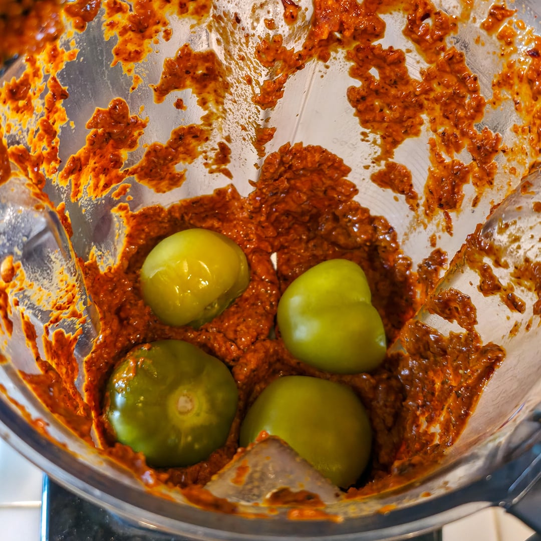 – Add in Tomatillos and salt and pulse until desired consistency is reached. Add more salt and/or bouillon to taste.