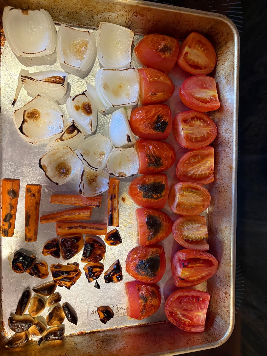 8 Roma tomatoes, 1 white onion, good handful of garlic, 5 habanero, 2 small carrots. Sprayed olive oil over the pan and broiled. Added a lime, splash of apple cider vinegar, and ~2 tsp salt. I do one small dish with no chiles for the weak hearted. Good heat, maybe add another carrot next time. Iāve done ginger and a bit more vinegar in other attempts to use as more of a hot sauce.