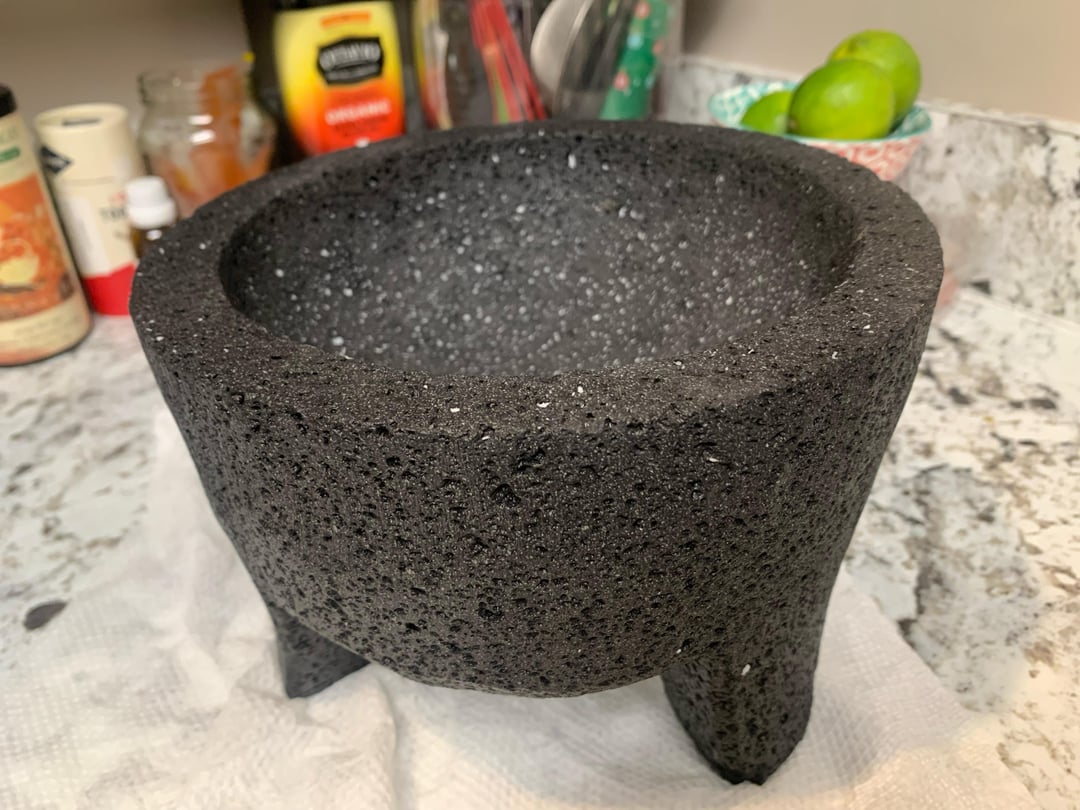 Hi! So for Christmas my best friend got me a molcajete! It took me a minute to find information and honestly I’m so excited to use it! I found a video on how to season it, so I started with the first round of grinding rice and rinsing but in another video I saw after it talked about how some of these are made of concrete instead of volcanic rock. It is a bit damp from when I rinsed it a bit ago and I have already ground a bit of rice in it so I’m so sorry to make this harder🥹 Is anyone able to tell if this is made of volcanic rock? Thanks so much in advance!