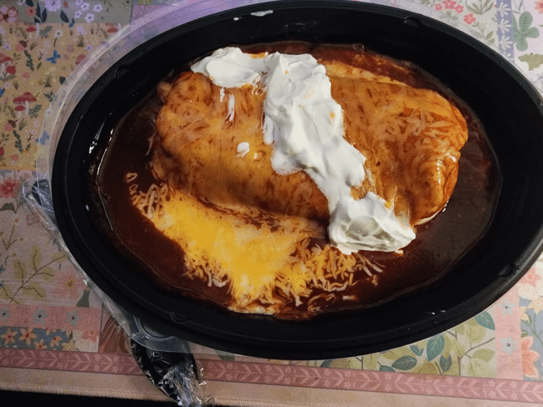 Not the best presentation because I didn't have squeeze tube sour cream. I freaking LOVED Taco Bell's old Smothered Burrito. I don't know if they'll ever bring it back because they still haven't! So I ordered a Bean Burrito with extra red sauce, onions, got a empty protein bowl container and 4 sides of red sauce extra. Then put shredded cheese kraft from home on top, microwaved with the lid loose on top for one minute and then applied the sour cream. I've never been happier.