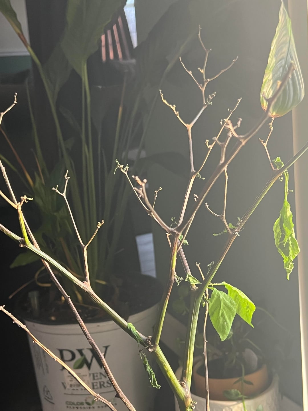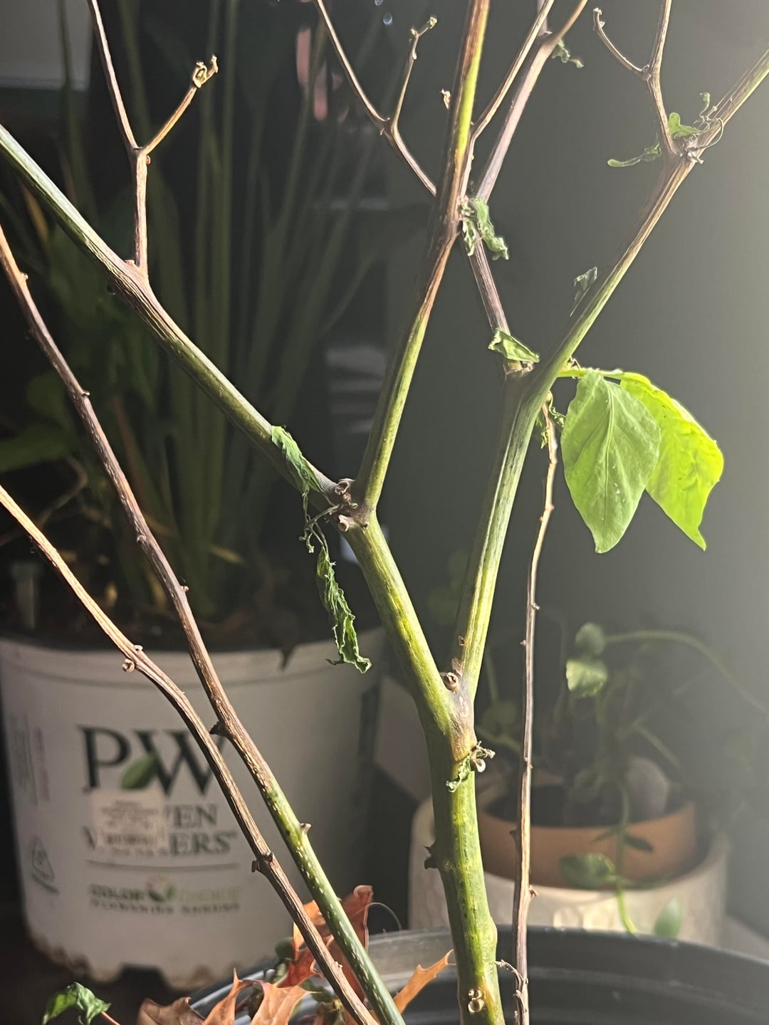 I brought in my this plant a few months ago when it started getting cold. It was doing fine. I just lightly water occasionally. I left home for 3 weeks and thoroughly watered when I got back (to compensate I guess). It has been browning and growing a few new leaves. I realized watering so much was mistake. I moved the mulch this morning to help the soil dry. What should I do to help it survive inside until May? (Zone 7)