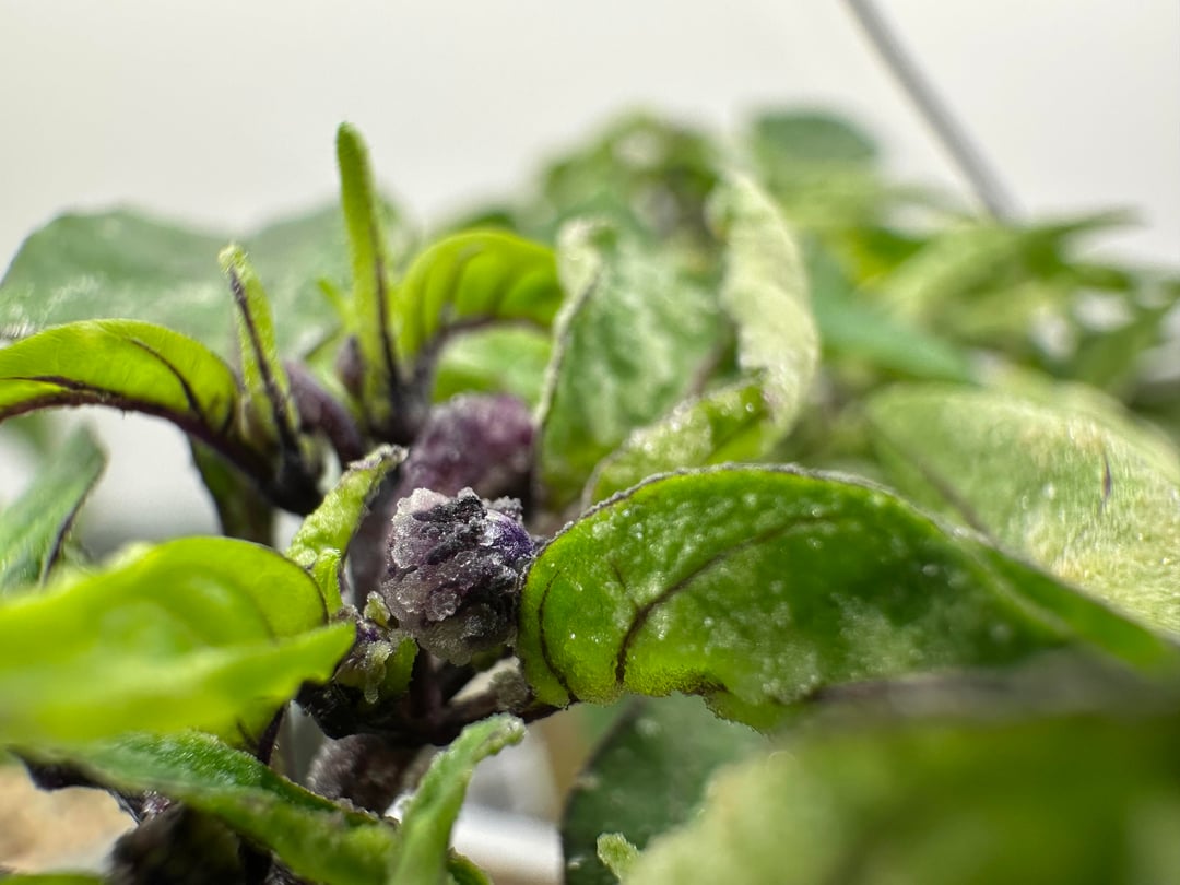I have a saltlike buildup on the leaves and flowers of my jalapeño multicolor, which is the only plant with this issue. Interestingly a grafted part of this plant doesnt show the same «stuff». It’s still more than happy to produce peppers. Hoping someone with more experince could chime in!