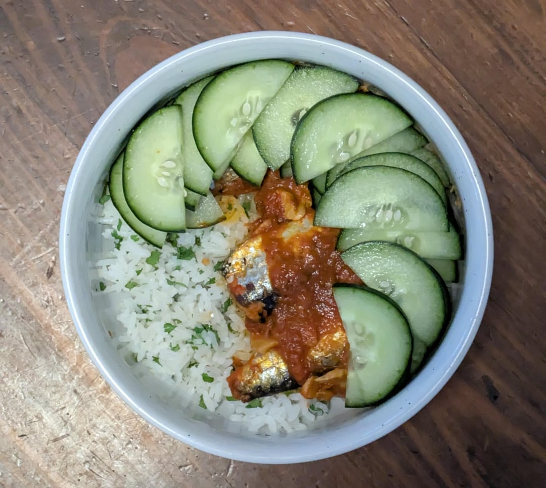 Enjoyed (as seen in the second photo) with homemade cilantro lime jasmine rice and fresh cucumber slices.