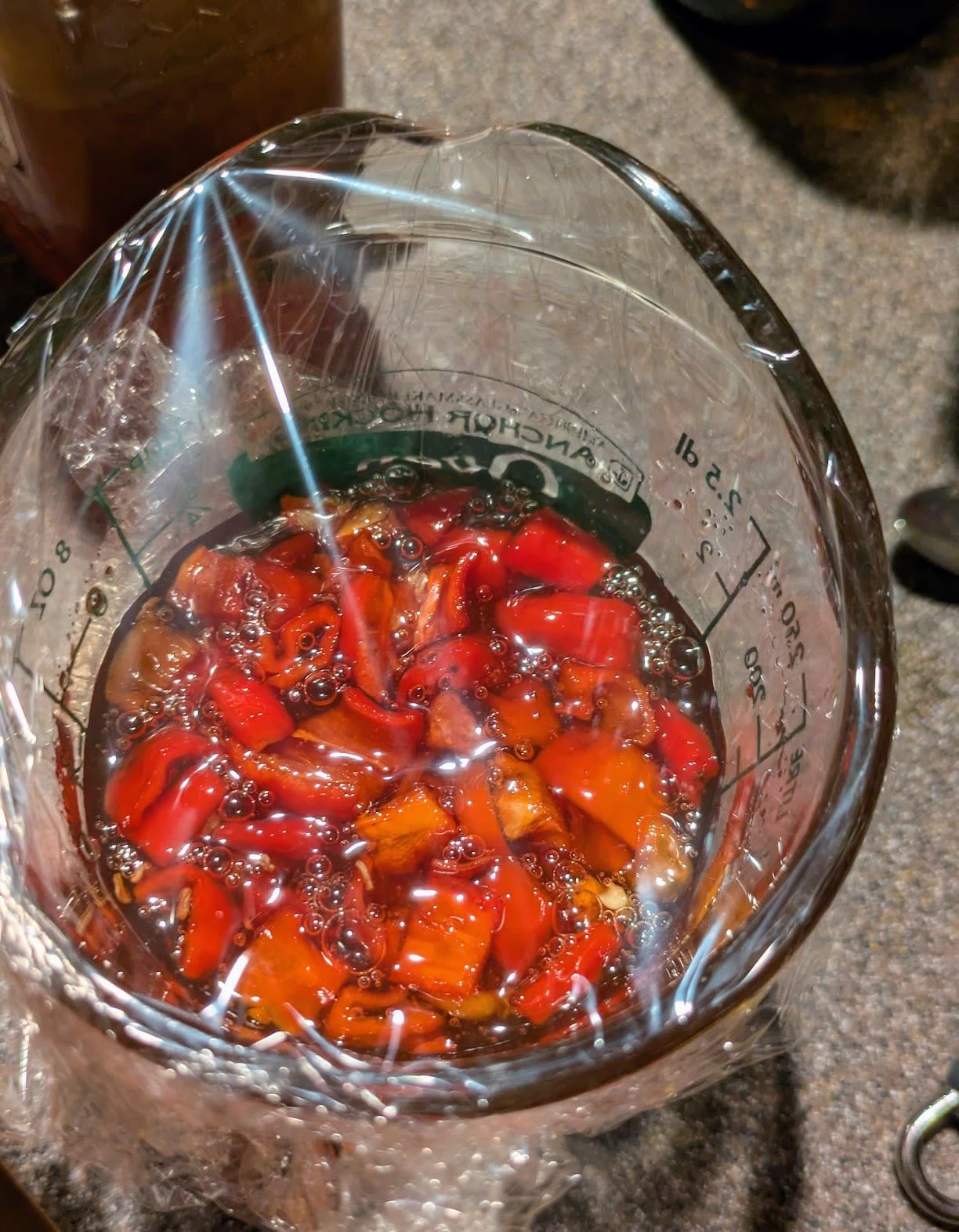 Making a batch of hot honey; this time with 2 decent-sized Bhut Jolokias. Probably will macerate 48h, then mix up in more raw honey to adjust the heat.by DiscountDog Spicyspicy foodspicy recipes 1 Comment bill_gannon 3 days ago Raw peppers in honey can grow botulism.Write A CommentYou must be logged in to post a comment.