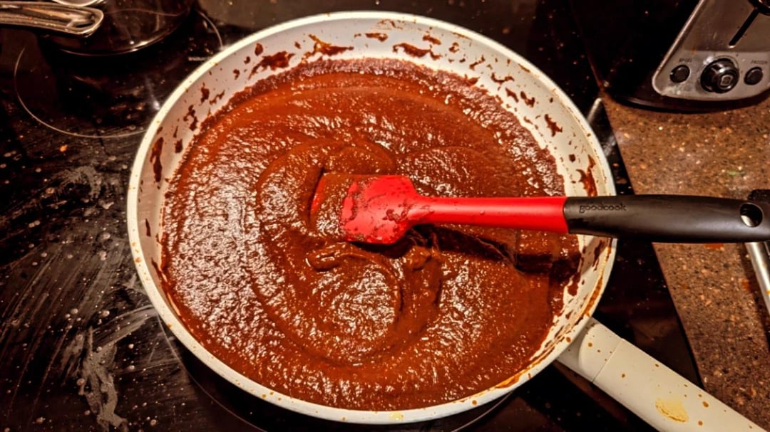 I chopped half a white onion, a bunch of cilantro, a few cloves of garlic and added it to ground beef. I put that mixture in a food processor with a chili tomato paste that I made earlier to mix together.