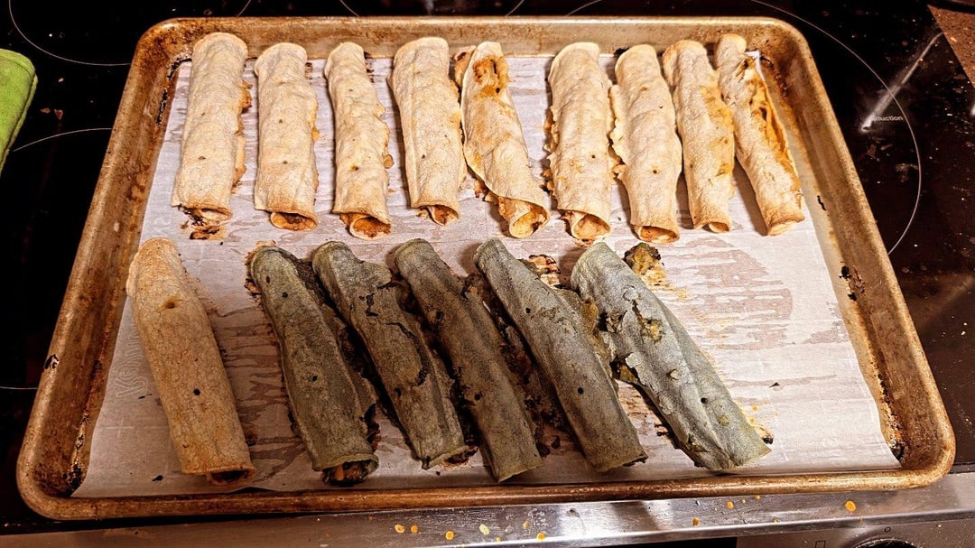 I spread the meat onto corn tortillas rolled them up and baked for about 20 minutes.