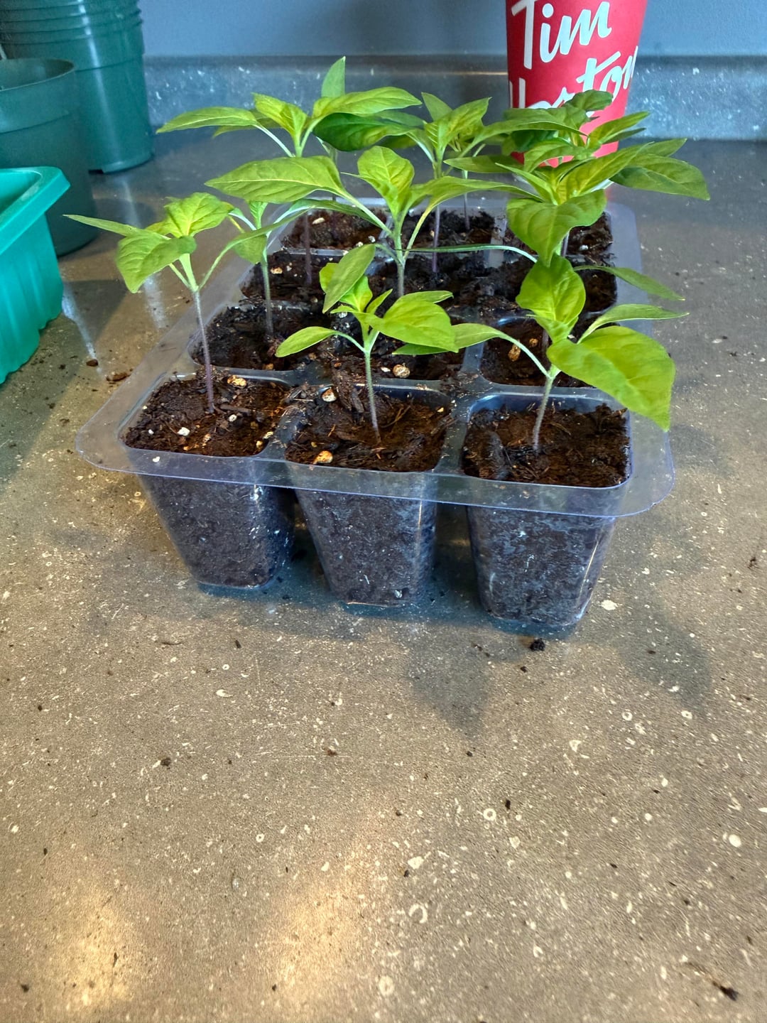 I potted some of my Habanero and Numex Twilight and paired them down. Disposed of about a dozen viable seedlings. I only want about 4 Habaneros and really only one nice Twilight. I started about a dozen of each just because I had the seeds and the room. I may have the room to take them further but there really isn’t much need.