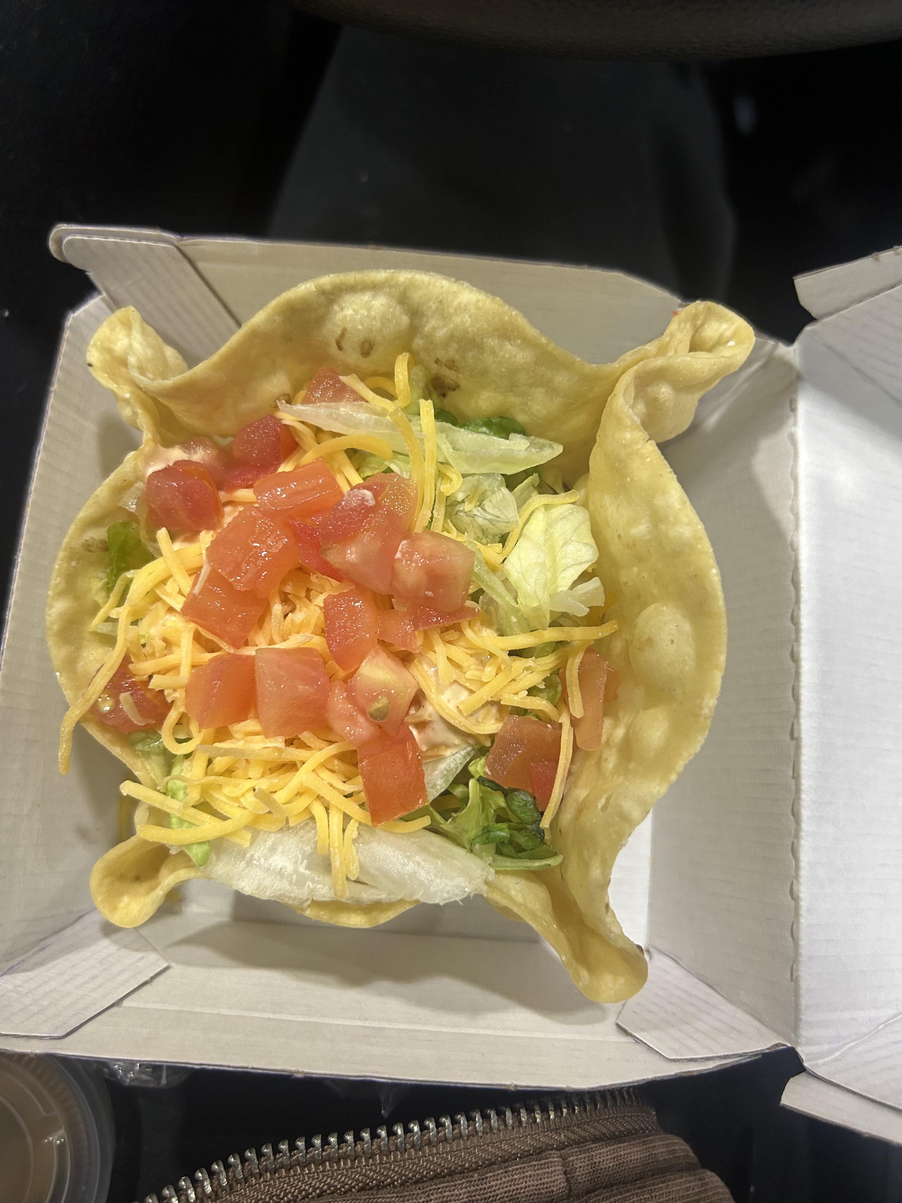 I know everyone has already been here saying this. But the taco salad was hands down one of my favorite items all the way back when they had the steak option and the orange southwest sauce packet. For a while it was the only thing I would even eat at Taco Bell! Had the mini tonight for the first time. Oh man! It was everything I wanted and then some! The shell was perfect I did some customizations to have it the way I used to; swapped black beans for beef and rice for the refried beans and added nacho cheese but oh man I’m already going back tomorrow for another. No notes. But the point of my rant is this; this item like everything I love (border bowls, Baja sauce, volcano sauce, taco salads, Carmel apple empanada, etc) will probably go away again soon. I just don’t understand why they have to take away everything good and replace it with total nonsense items!! Taco Bell read the Reddit!! Give the people what we want!