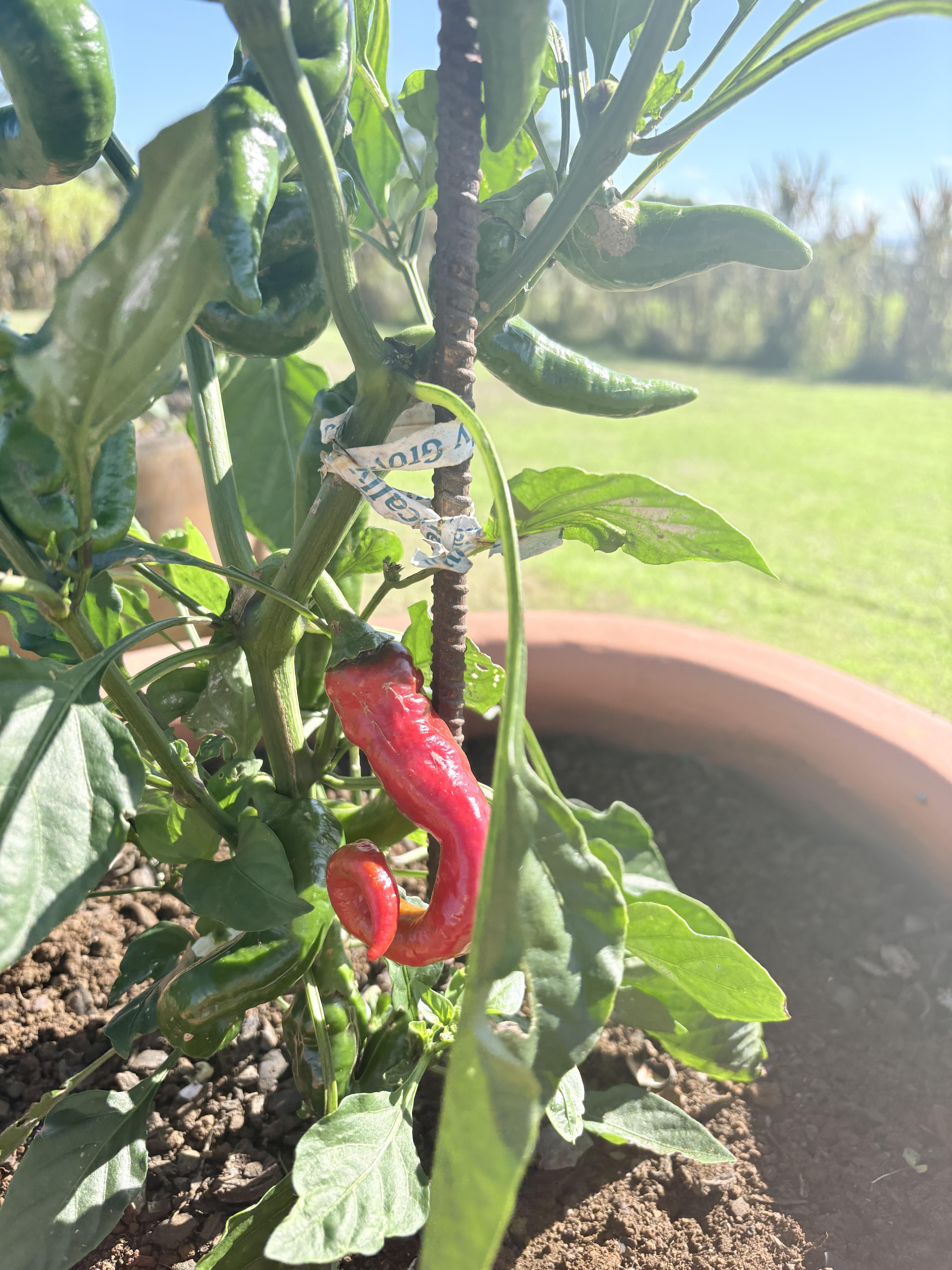 Once again the seeds I bought didn’t develop into what was promised. They were supposed to be Thai Dragon Chilies. The ones that hang down straight and are about 3” long. These are nice flavored, almost no heat. Disappointed again.by punabear Hot peppersPeppersSpicy Stuffsweet peppersWrite A CommentYou must be logged in to post a comment.