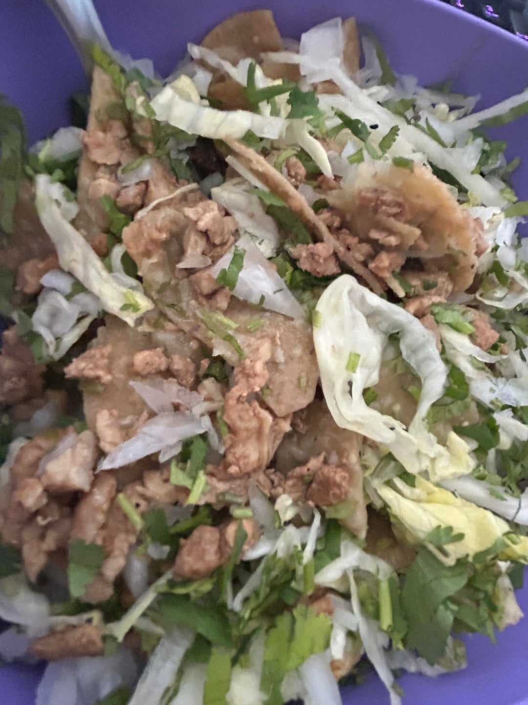 My neighbor has a puesto outside of our building and the Chilaquiles are very popular. I normally get them with chicken but today I opted for bistec. $65 pesos including a $15 peso tip… Hell yeah dude!
